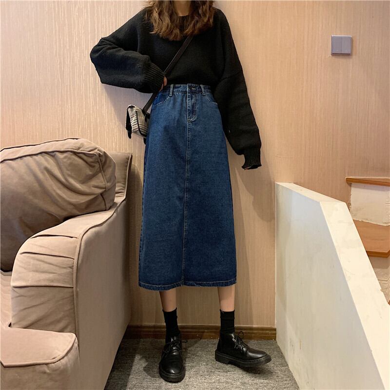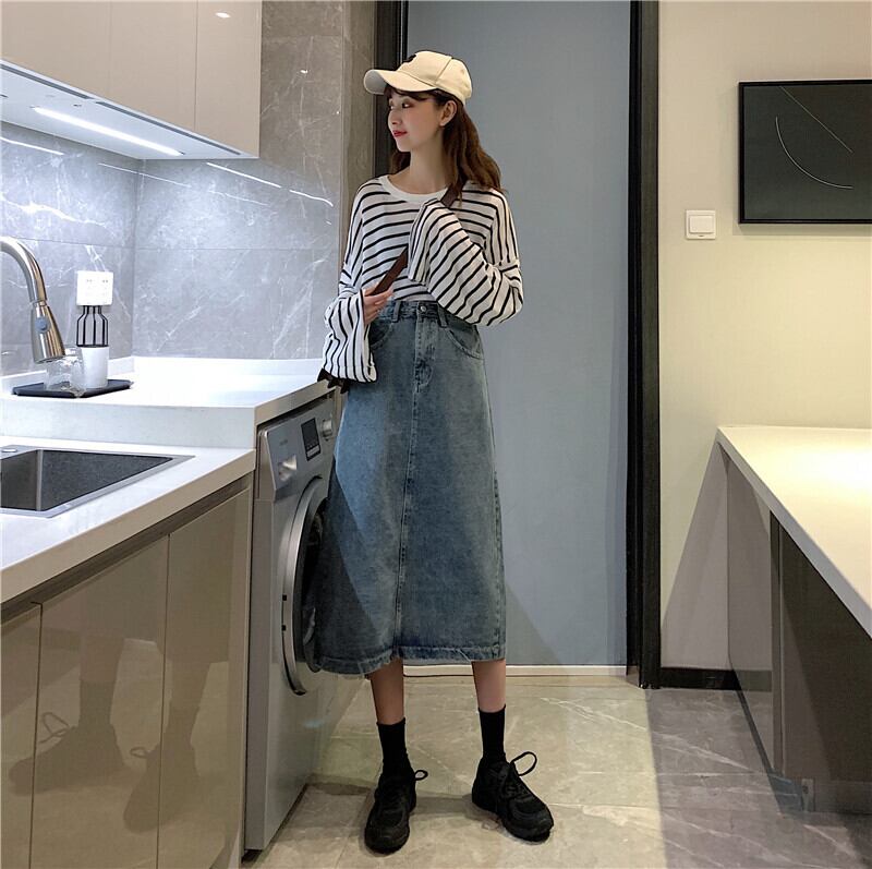 スタンダードブルースカート スプリングサマーハイウェストAライン薄手 レトロ 春物 夏物 クレセントシティ39244362560