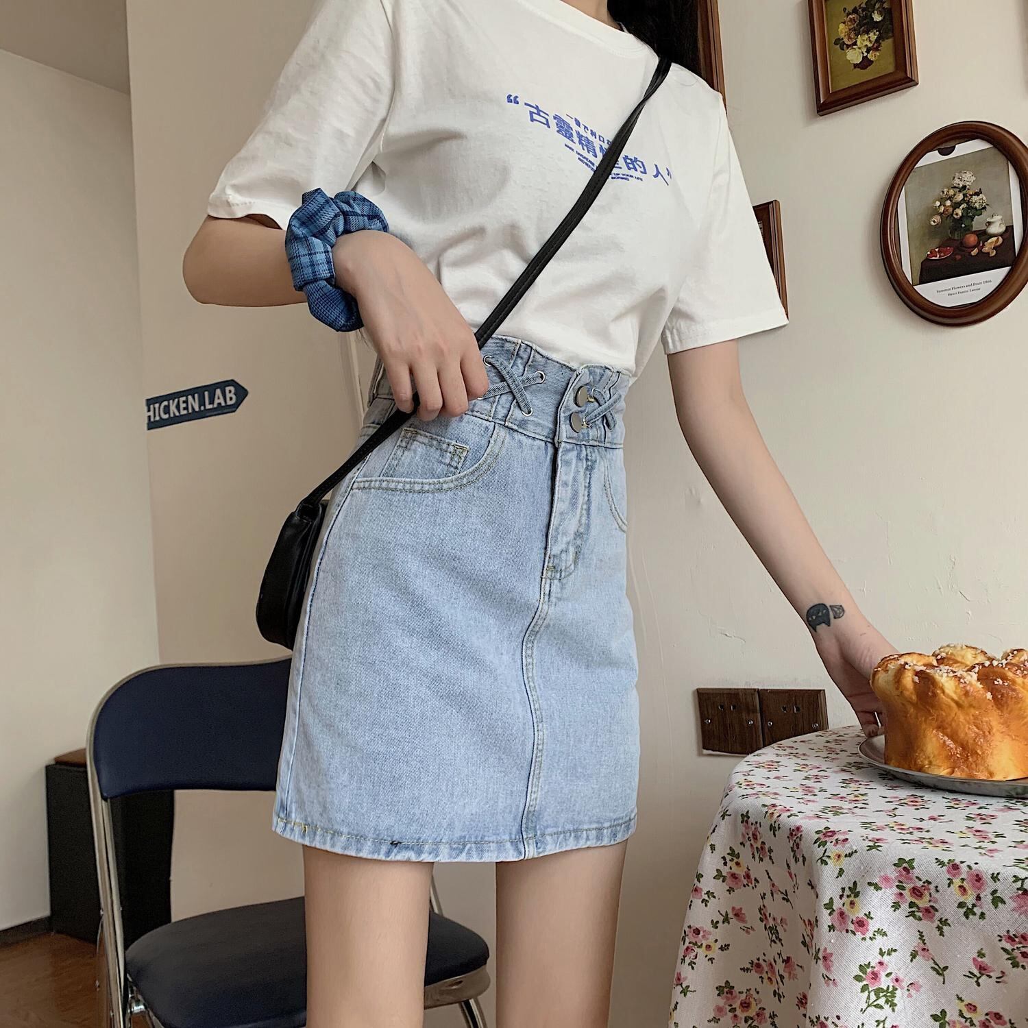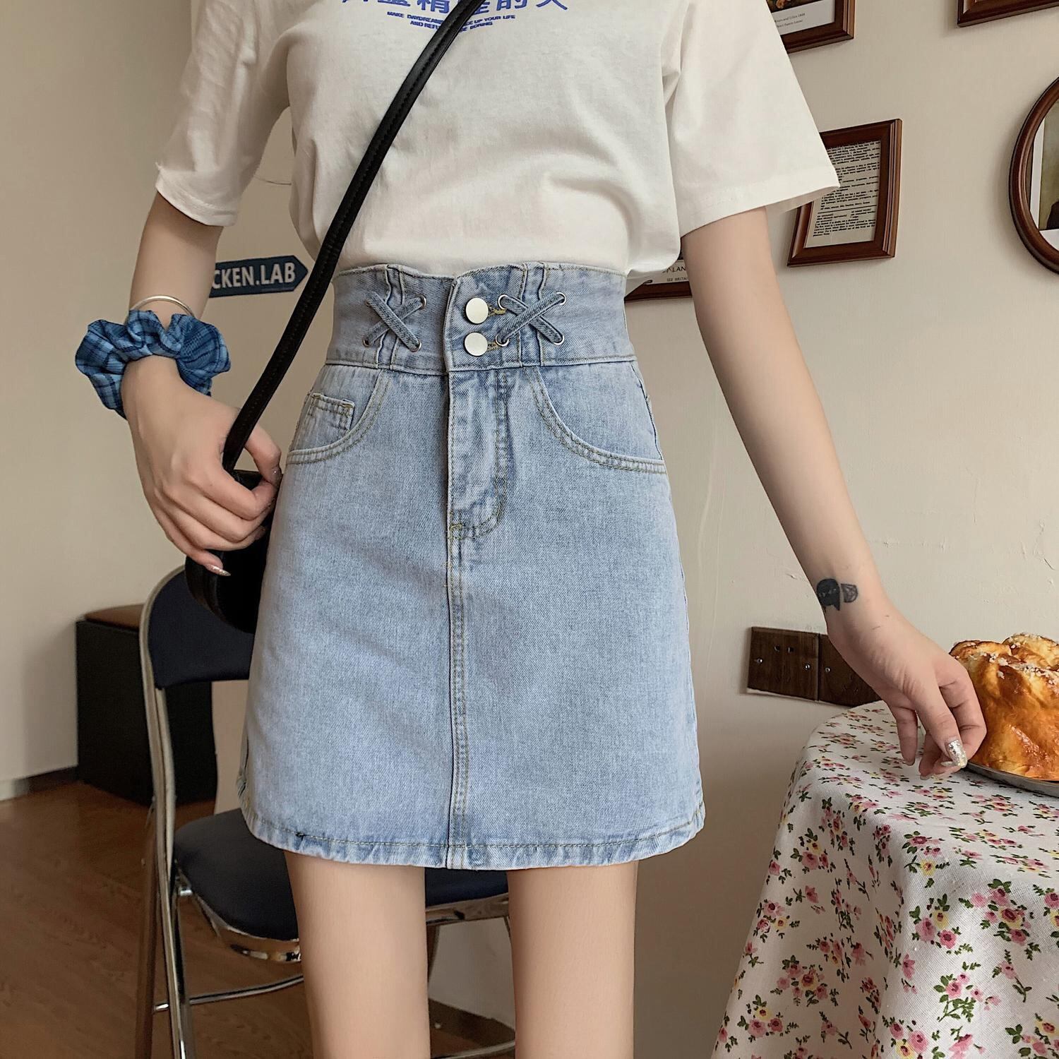 スカート サマーハイウェストウェストスリムAライン 夏物 クレセントシティ4295945720