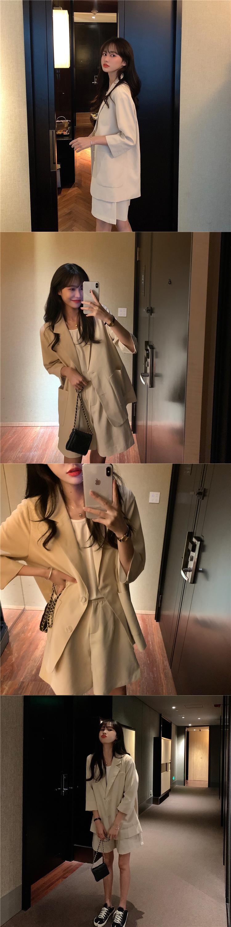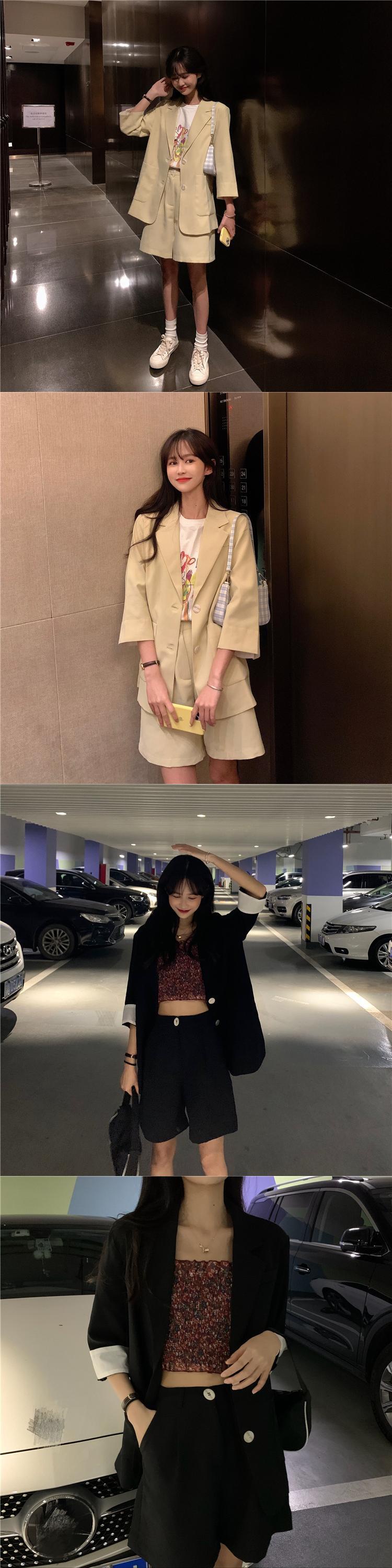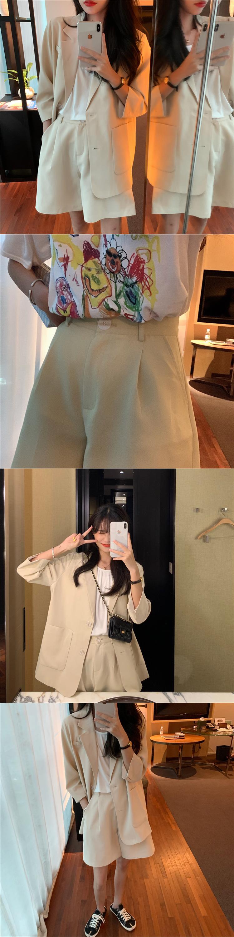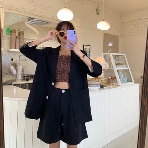 サマースリーブブラックジャケット ハイウェストウェストルーズワイドレッグショート 夏物 ワイドパンツ クレセントシティ83059023166