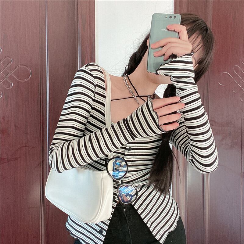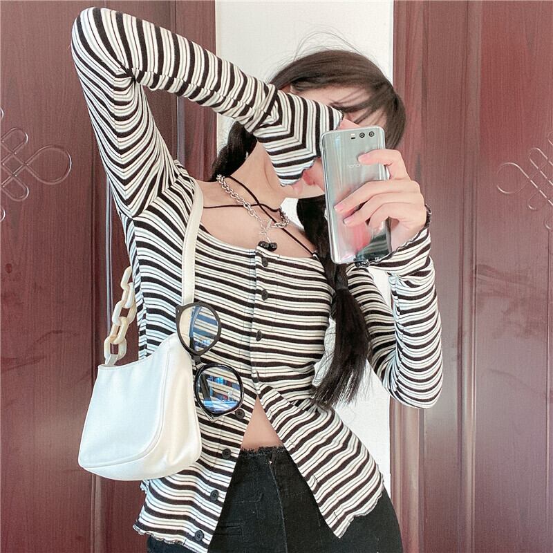 ストライプTシャツ レディーススプリングニットカーディガントップス ロング 春物 スクウェア クレセントシティ13235233188