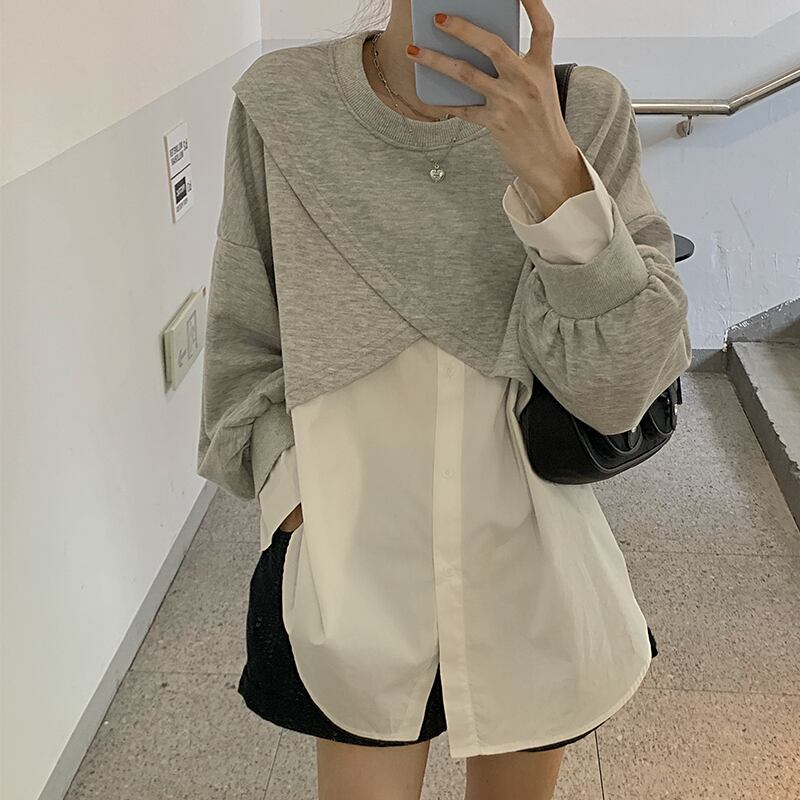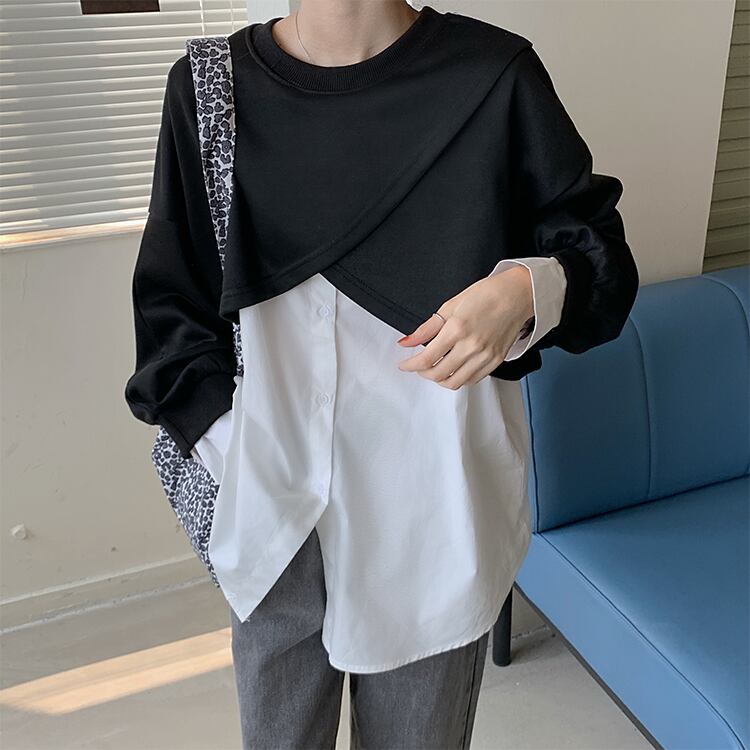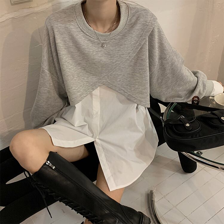 スプリングショートセーター レディースルーズホワイトシャツ ロング 春物 クレセントシティ42157833258