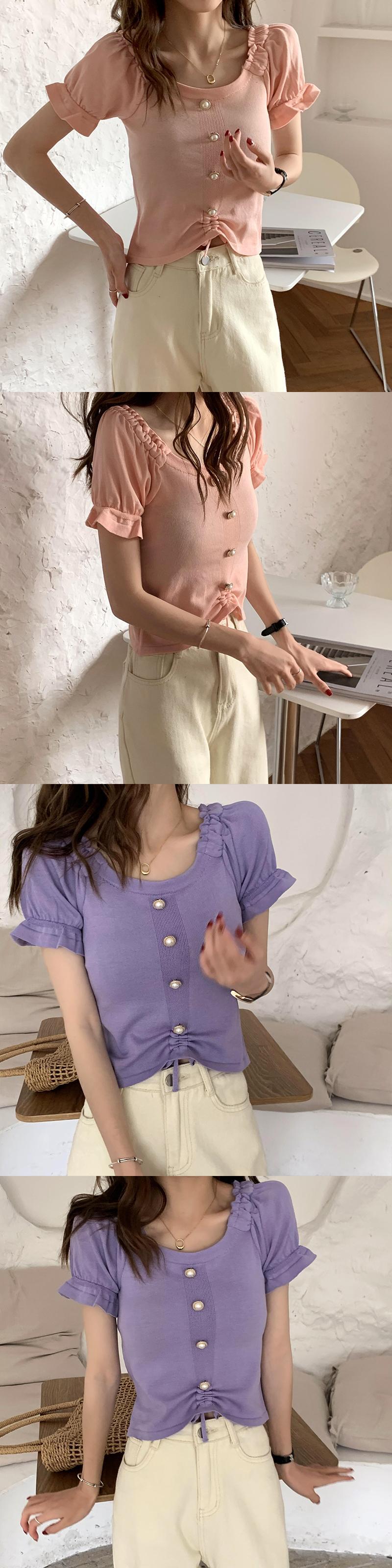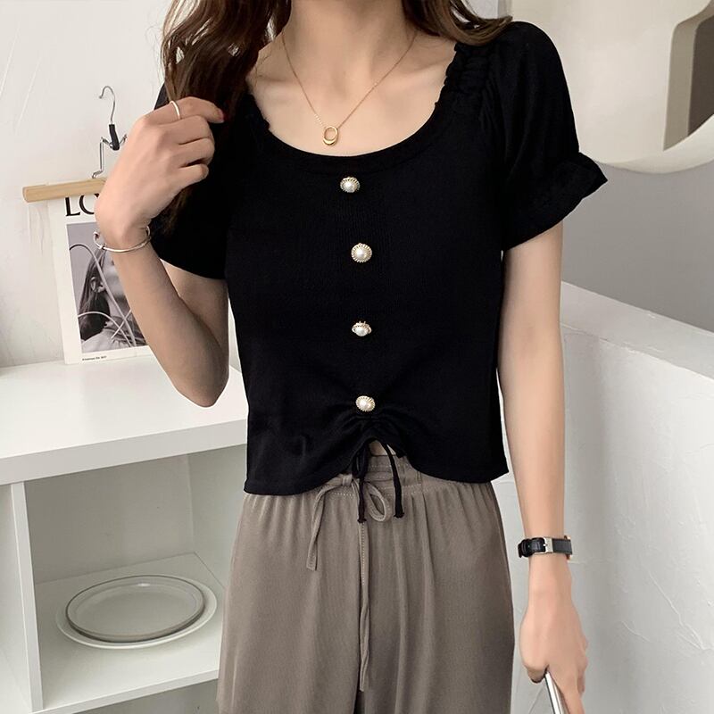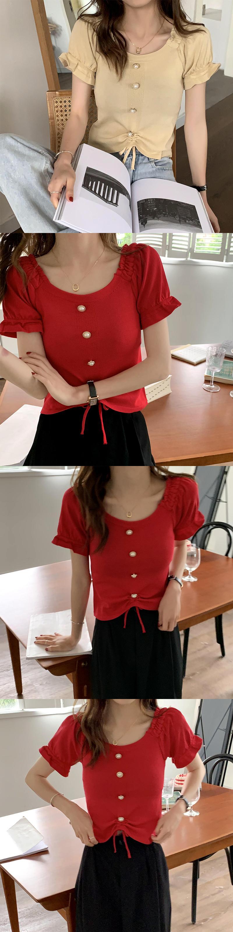 ホワイトショートトップス ギャザー半袖スリーブニットTシャツ ハーフスリーブ クレセントシティ64519820058