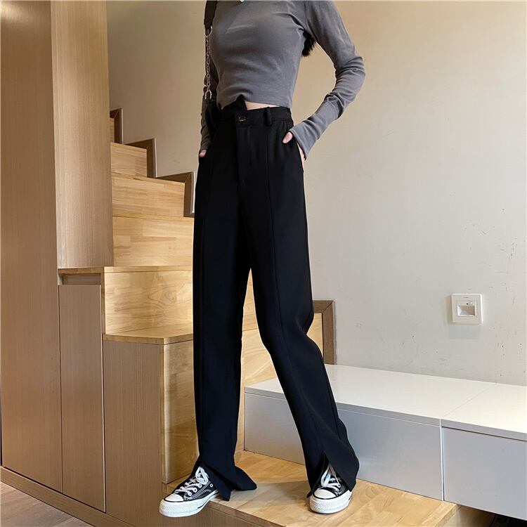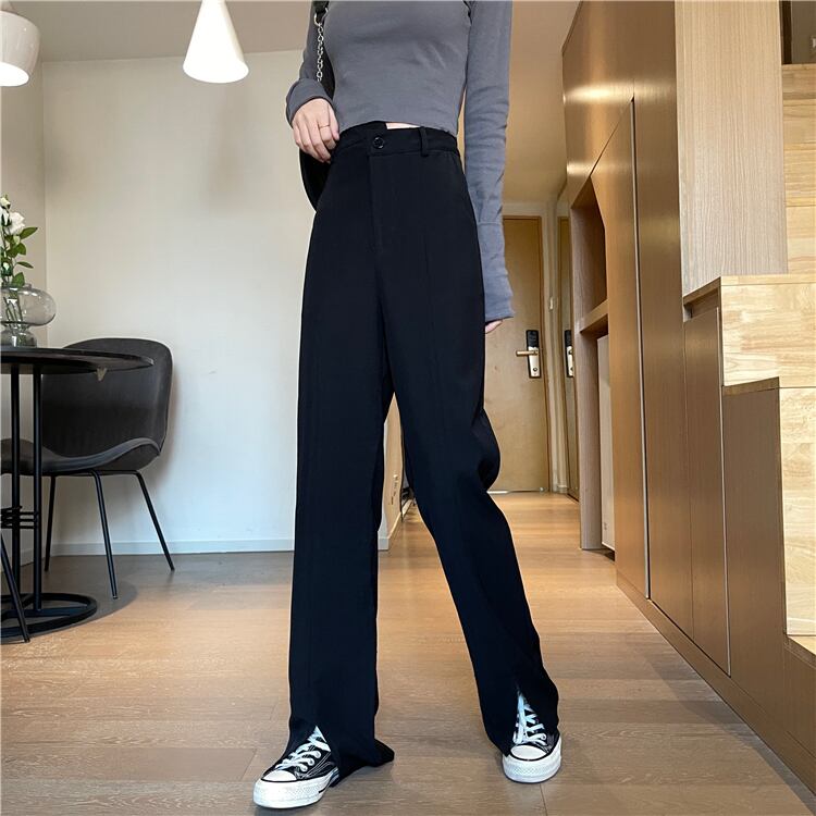 パンツ スプリングハイウェストウェストワイドレッグルーズ薄手 春物 ワイドパンツ クレセントシティ62805429786