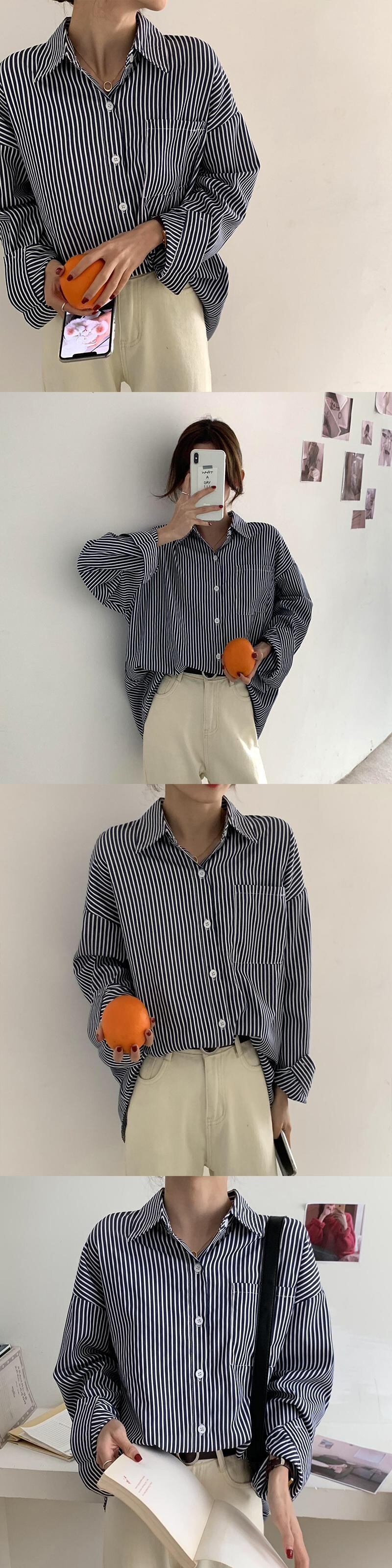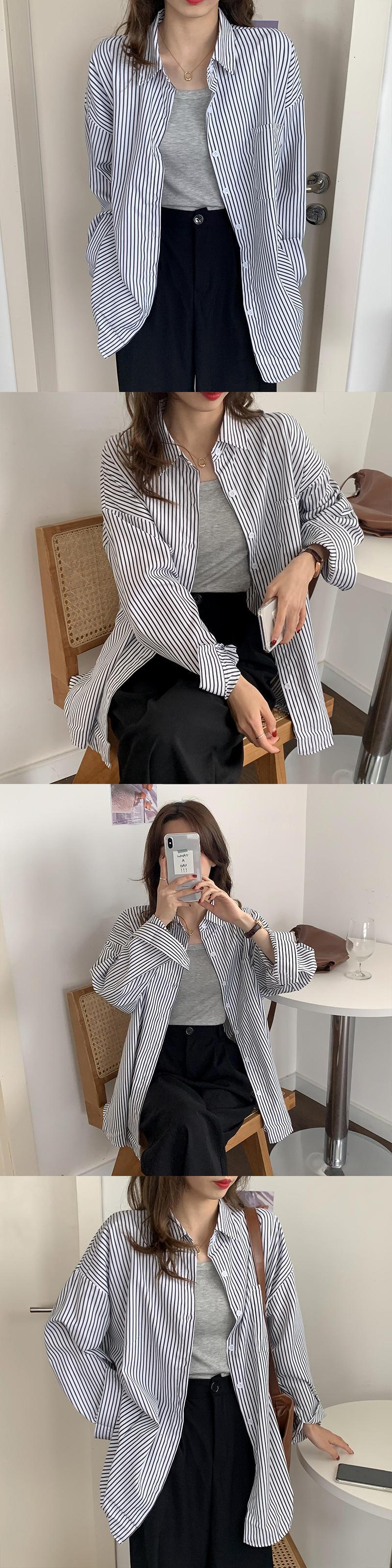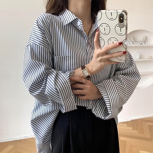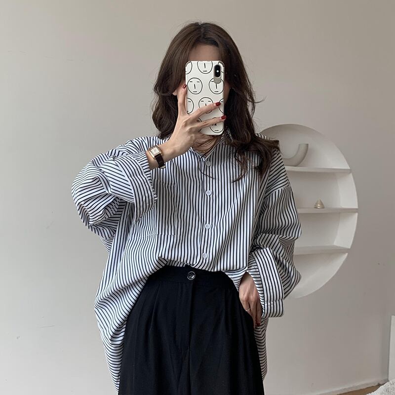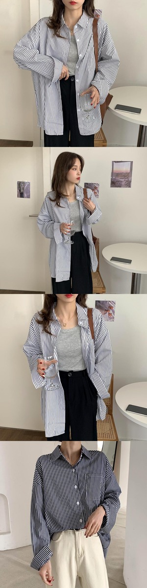 ストライプシャツ スプリングカジュアルルーズ ロング 春物 クレセントシティ77387502362