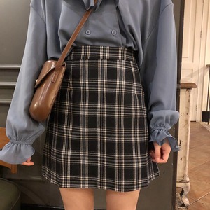格子柄スカート ハイウェストウェスト薄手Aラインスタンダード レトロ クレセントシティ34180760774