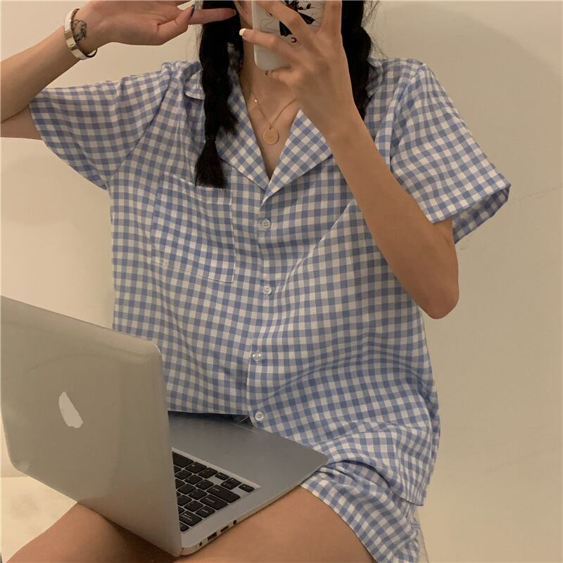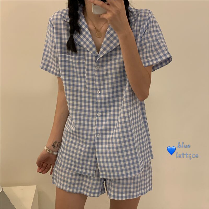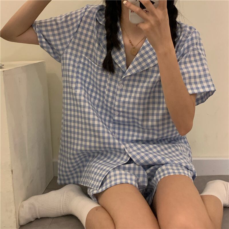 格子柄半袖スリーブサマースタイルルーズセット ショート ハーフスリーブ 大人ガーリー スウィート キュート カジュアル 夏物 クレセントシティ31975239420