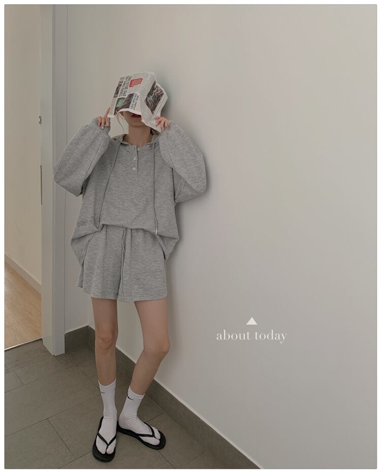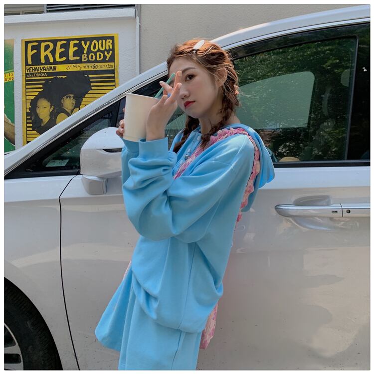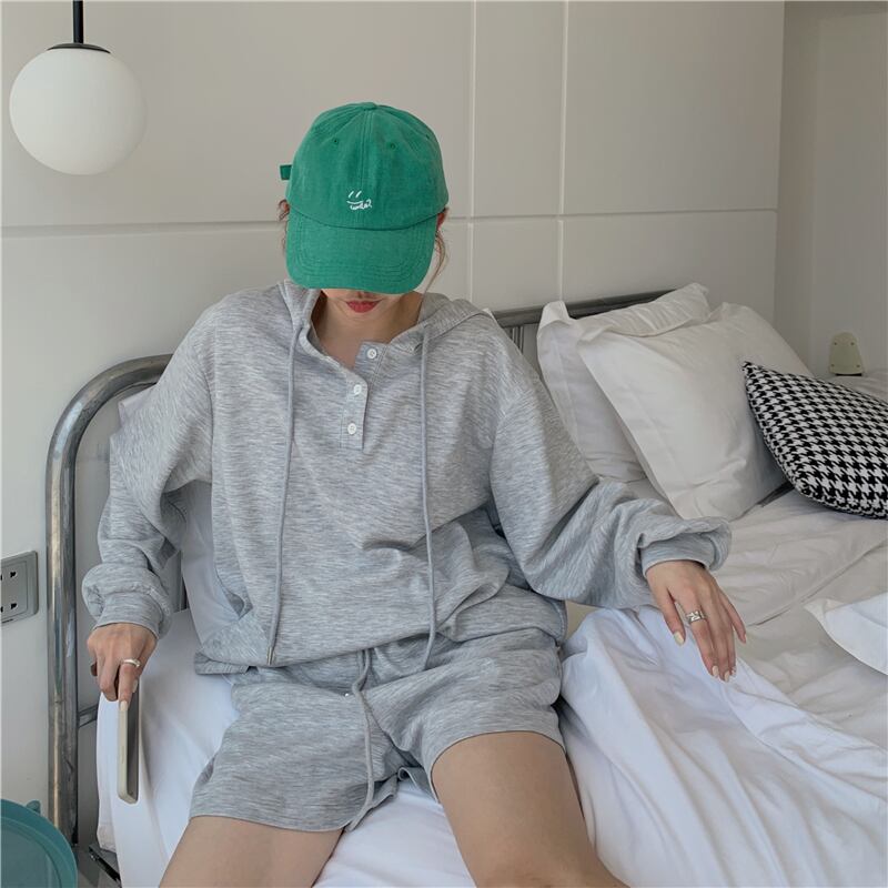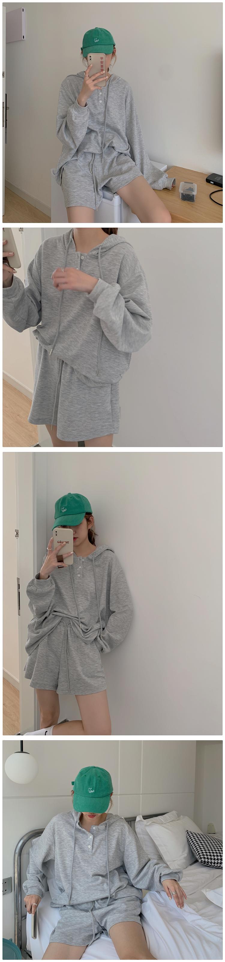 カラールーズフードカーディガンTシャツ ハイウェストカジュアルショーツ ロング ブルマー ピュア クレセントシティ6723167848