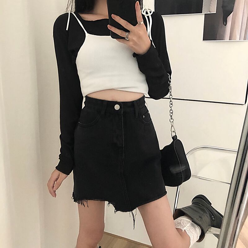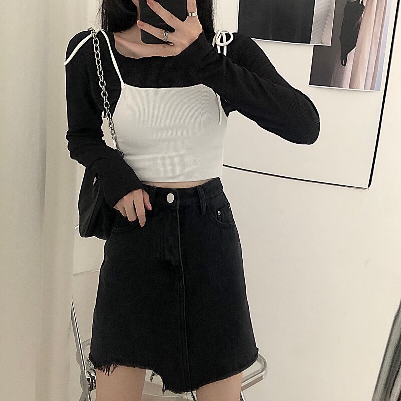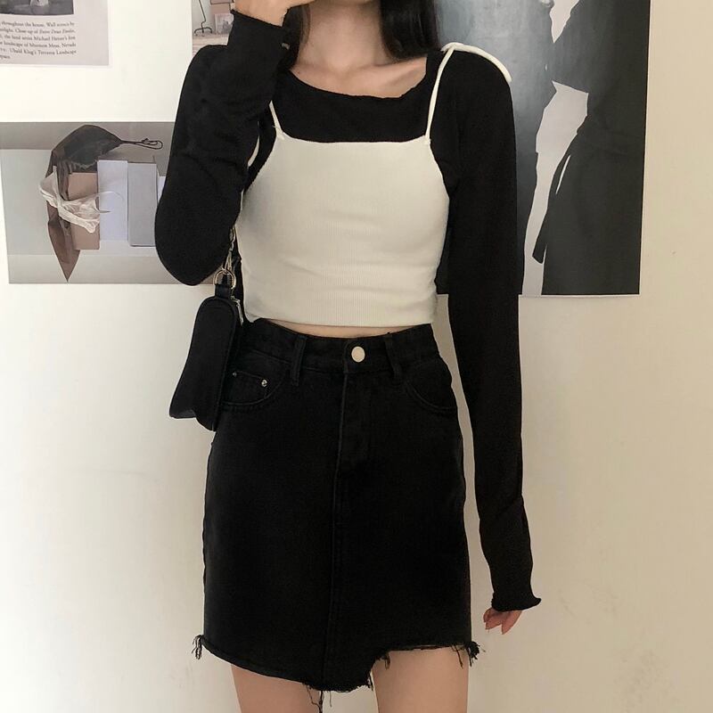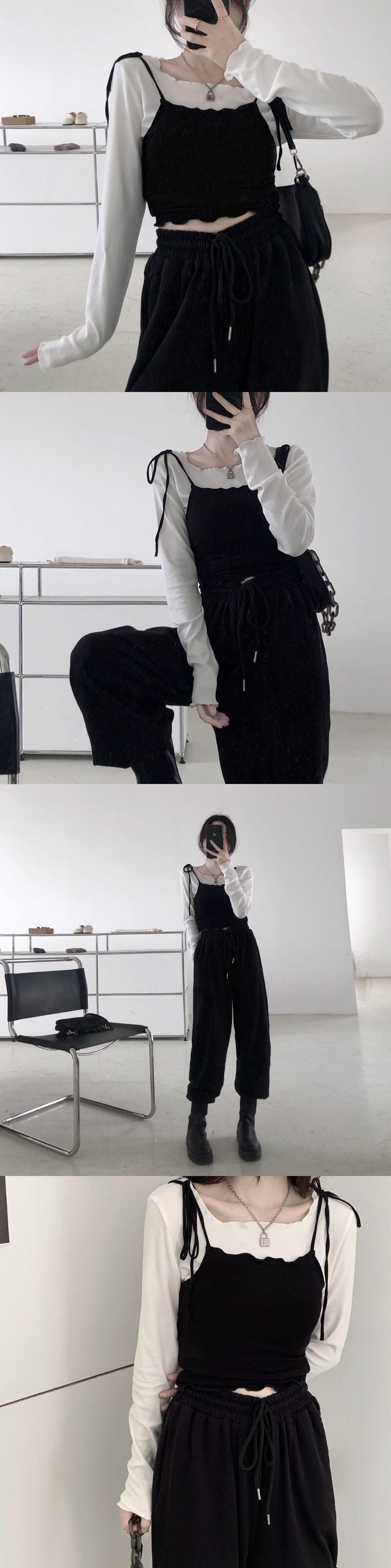 色:白いスリング,ブラックサスペンダー,黒底シャツ,ホワイトボトミングシャツ