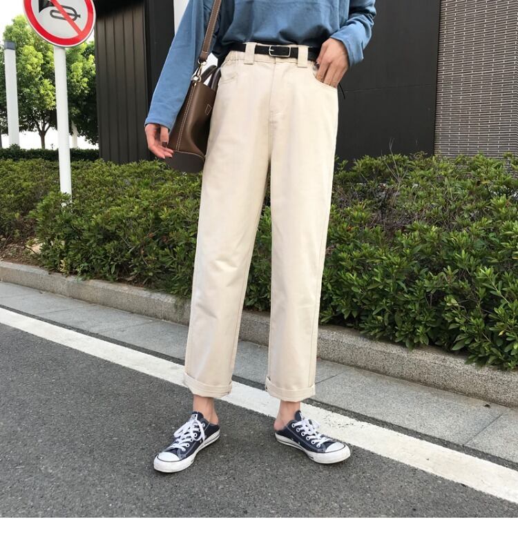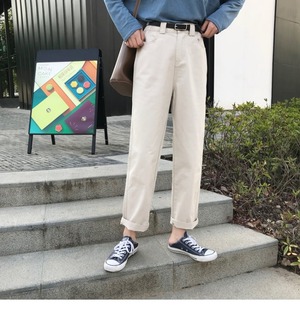 カラーストレッチハイウェストウェストカジュアルパンツ スプリングルーズオーバーオール エラスティック 伸縮 春物 クレセントシティ56238399430