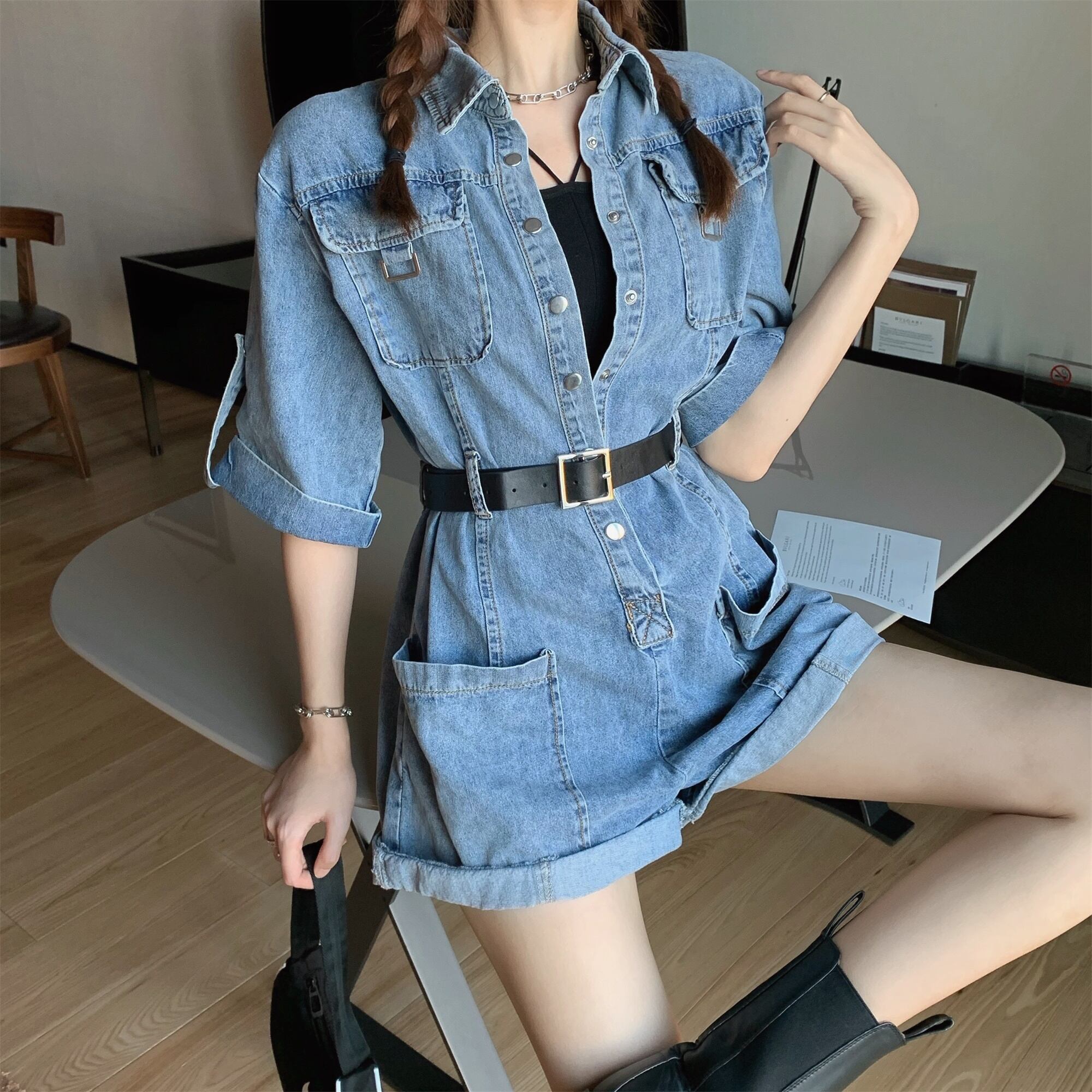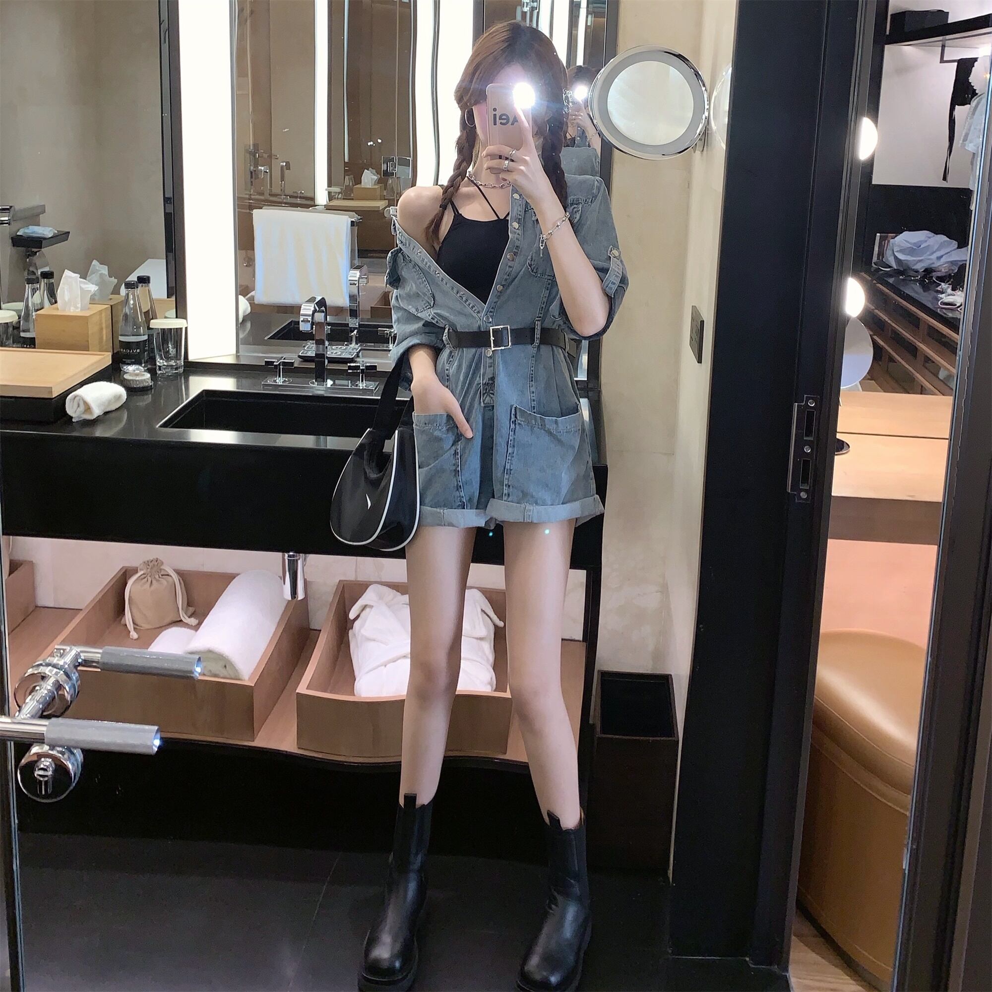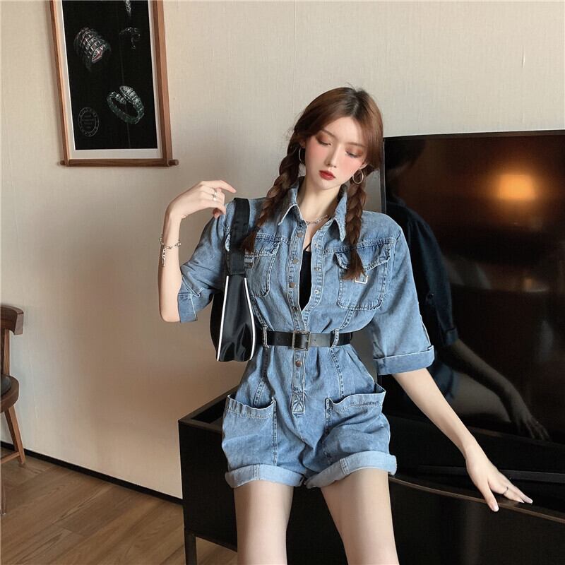 ジャンプスーツ オールインワン サマースタンダードハイウェスト薄手ショーツ レトロ 夏物 ブルマー クレセントシティ16042912357