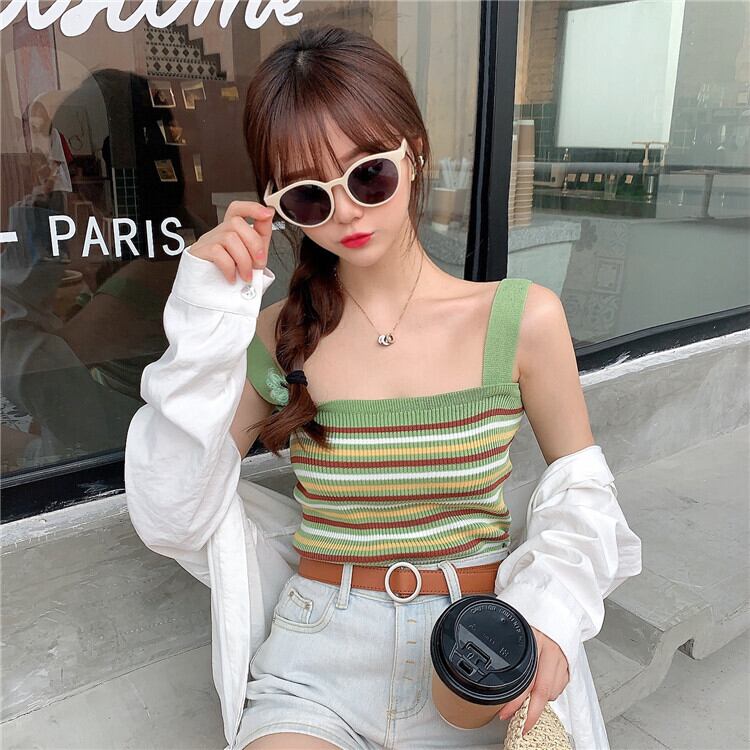 ストライプセーター サマースタイルスリムショートノースリーブ 半袖 ハーフスリーブ 夏物 クレセントシティ97148388712