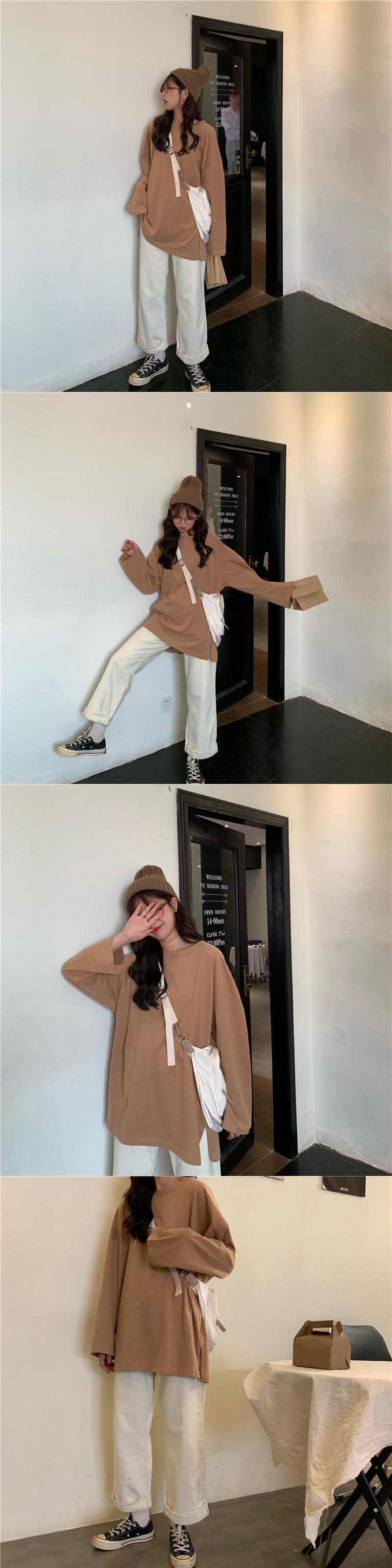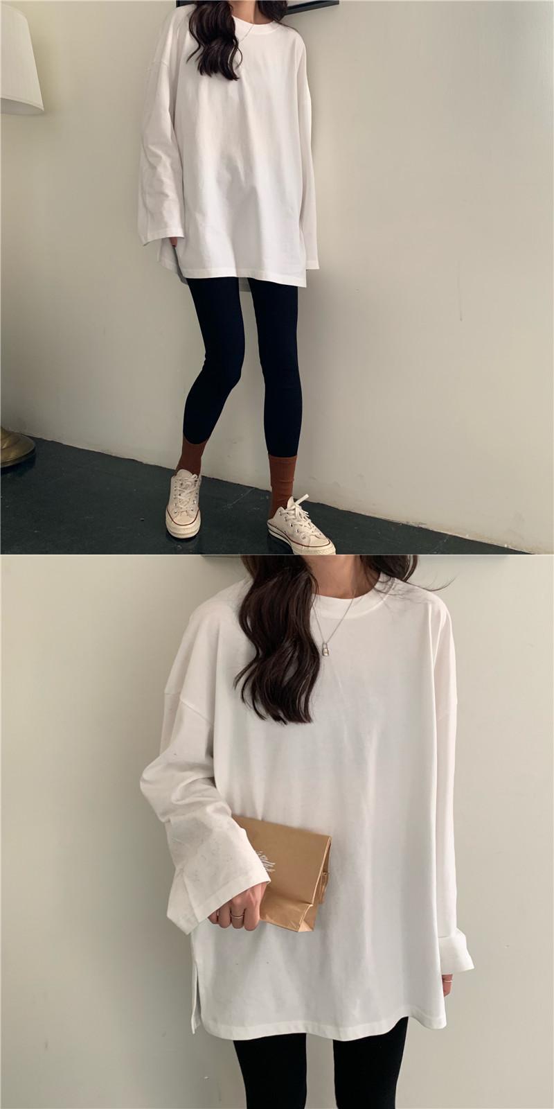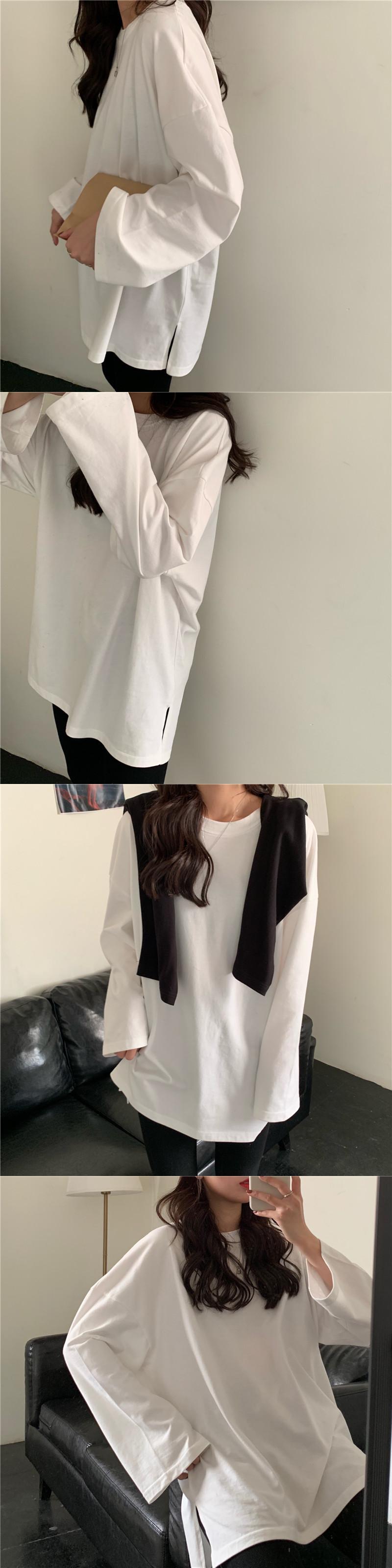 ホワイトTシャツ シャツ オータムルーズソリッド カラートップス ロング 秋物 ソリッドカラー クレセントシティ32172002294