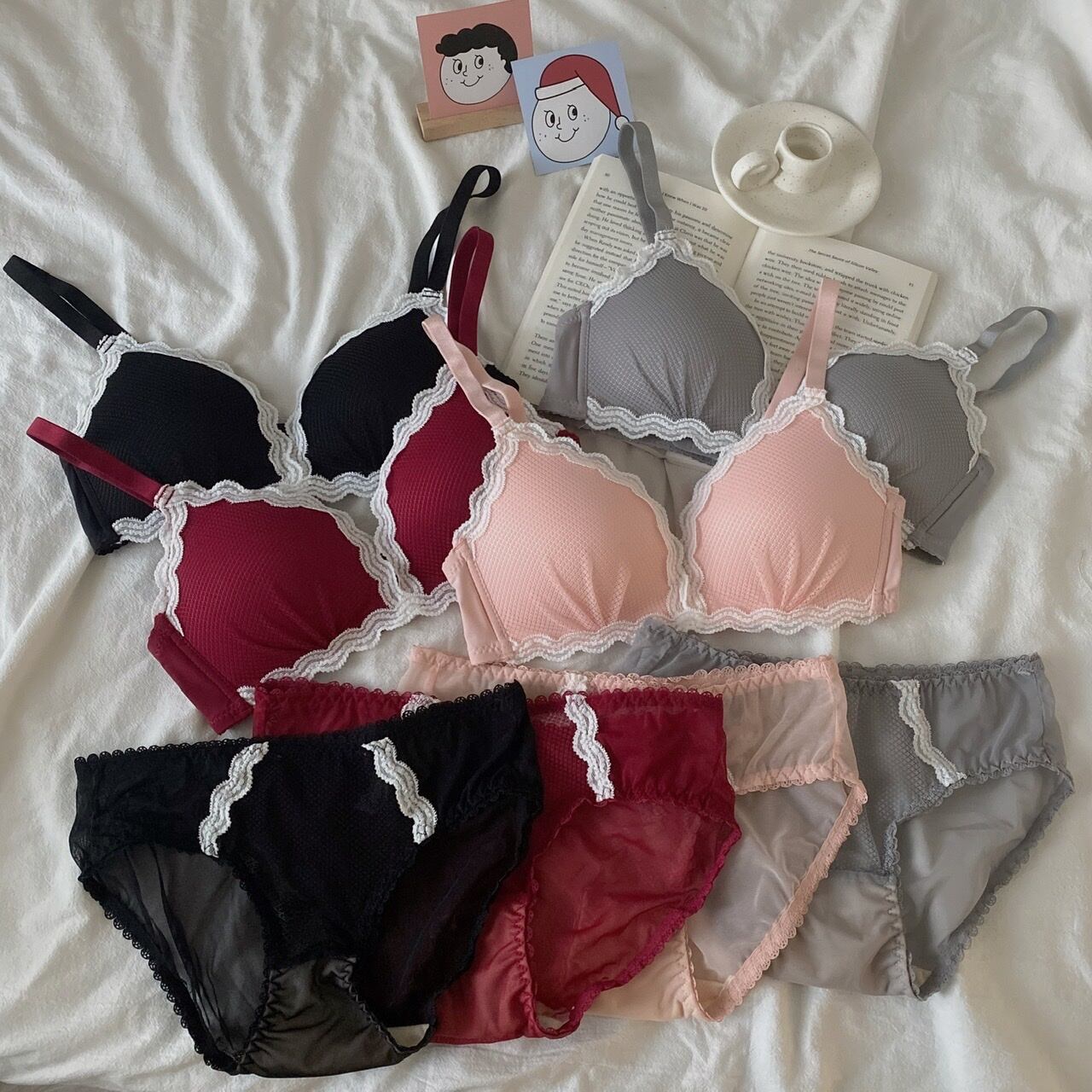 色:黒下着シングル,グレーの下着ワンピース,ピンクの下着ワンピース,ブルゴーニュ一枚の下着,黒下着セット,グレーの下着セット,ピンクの下着セット,ブルゴーニュの下着セット