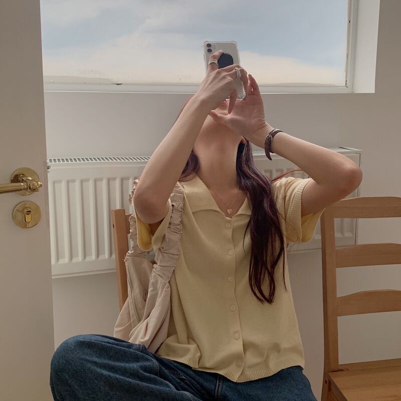 ニットセーター 薄手サマールーズソリッド カラー半袖スリーブカーディガンジャケット トップス ショート ハーフスリーブ 夏物 ソリッドカラー クレセントシティ58126034759