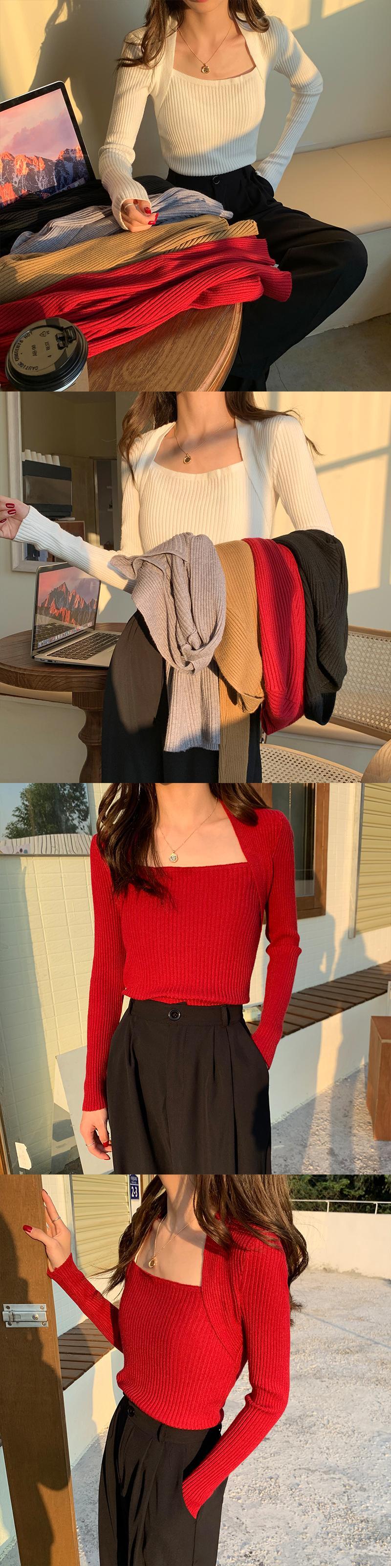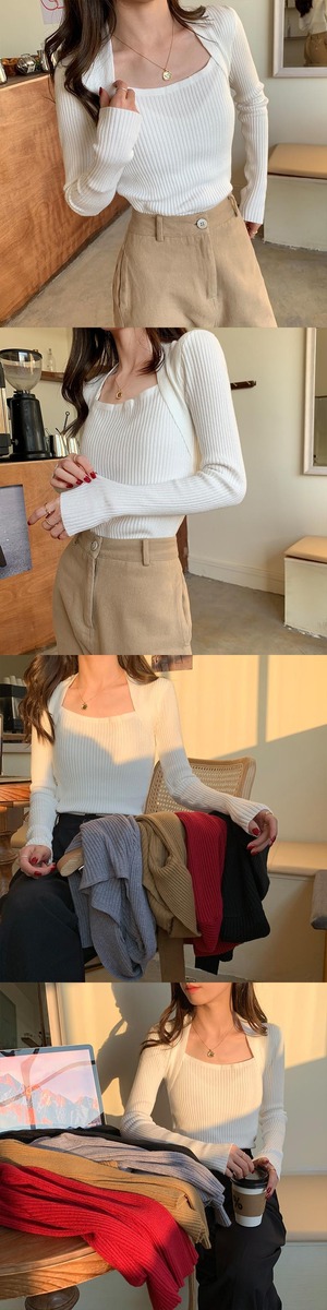 ニットシャツ スリムカラートップス ウィンター ロング 冬物 スクウェア クレセントシティ95436034777