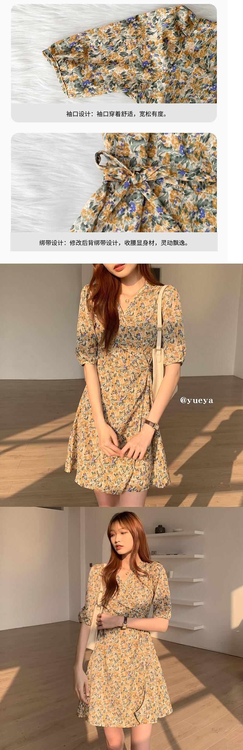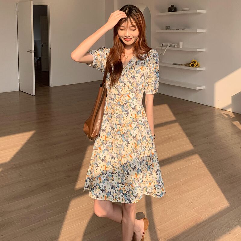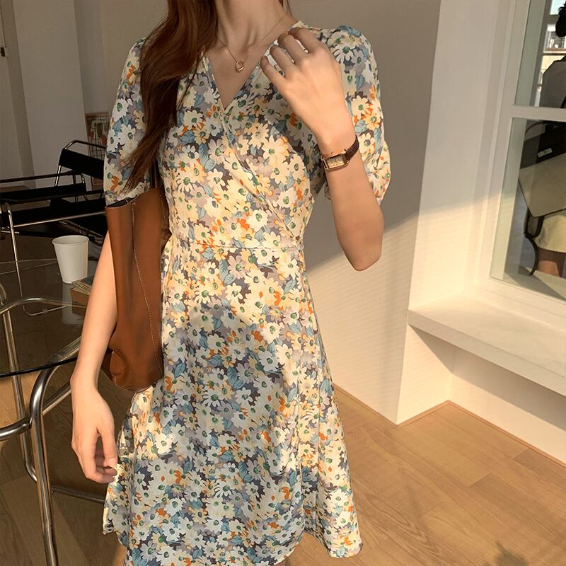 シフォンドレス サマーウェストVネックAライン薄手フローラルスカート 夏物 花柄 クレセントシティ3636458297