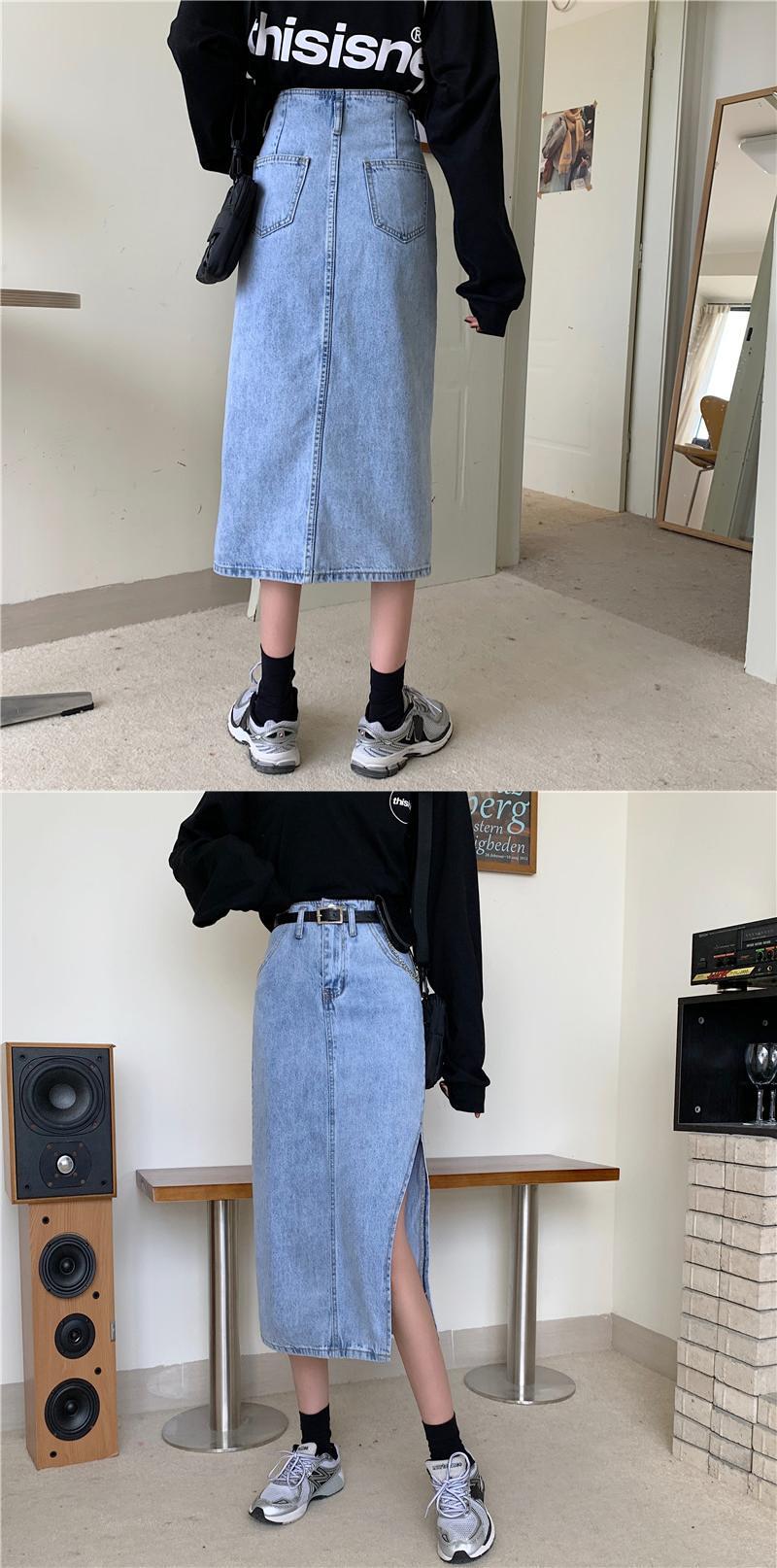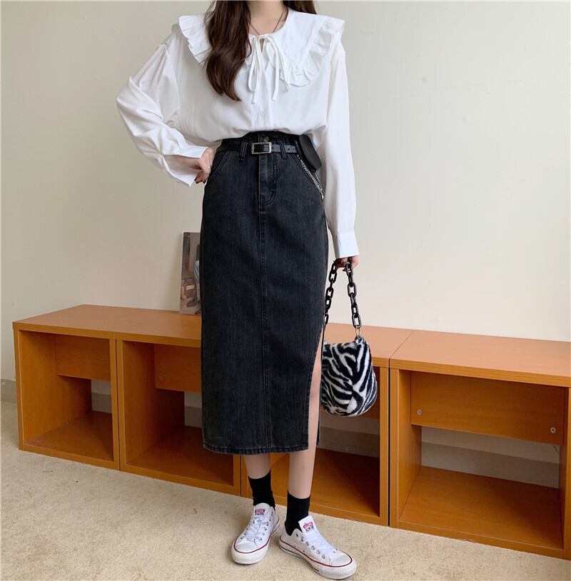 スカート スプリングオータムスタンダードハイウェスト薄手Aライン レトロ 春物 秋物 クレセントシティ11956476602