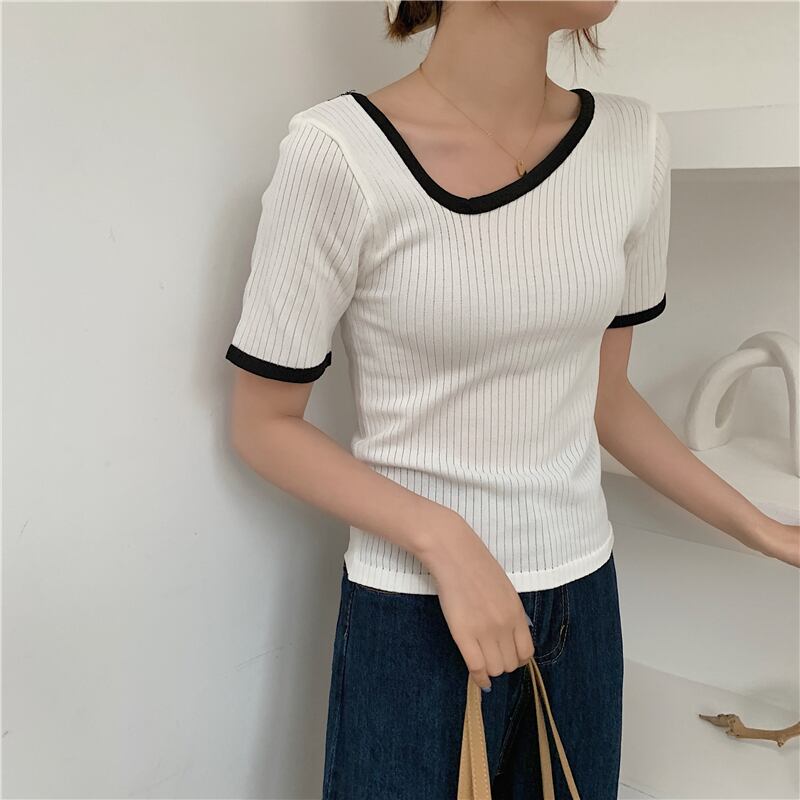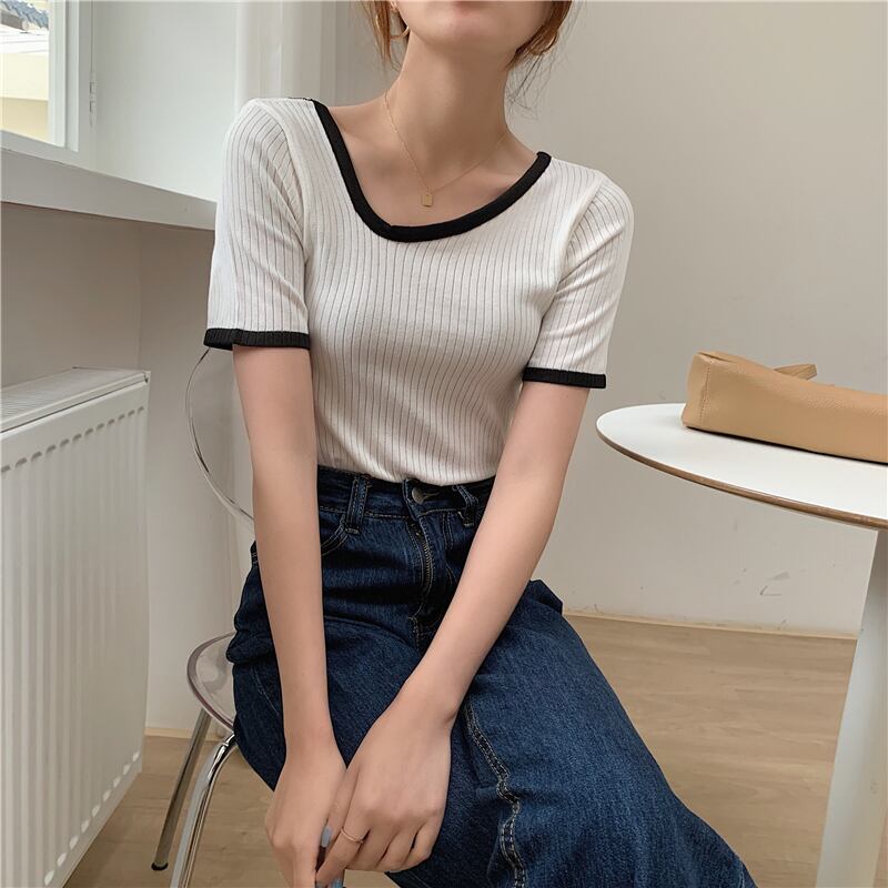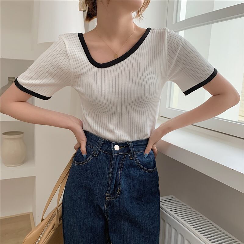 Tシャツ サマースタイルカラースリムブラックトップス 夏物 クレセントシティ25425800214