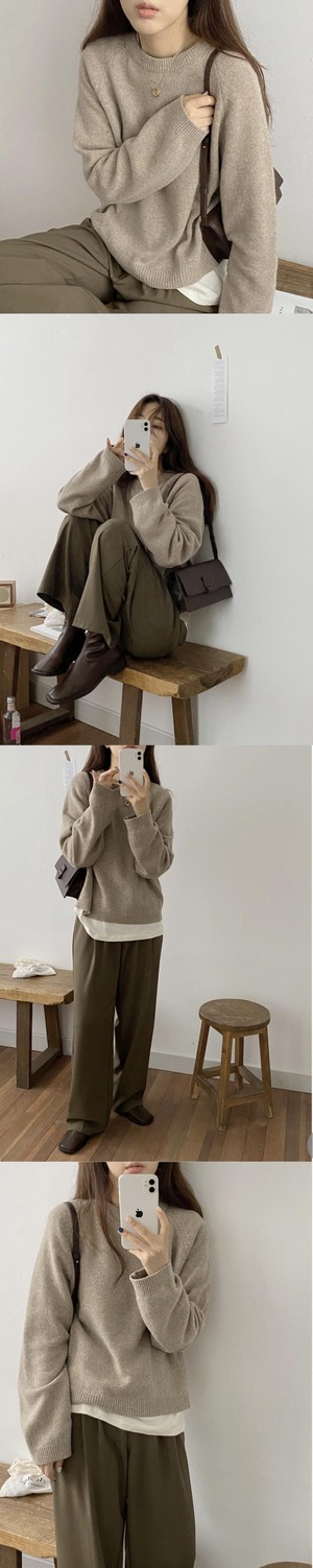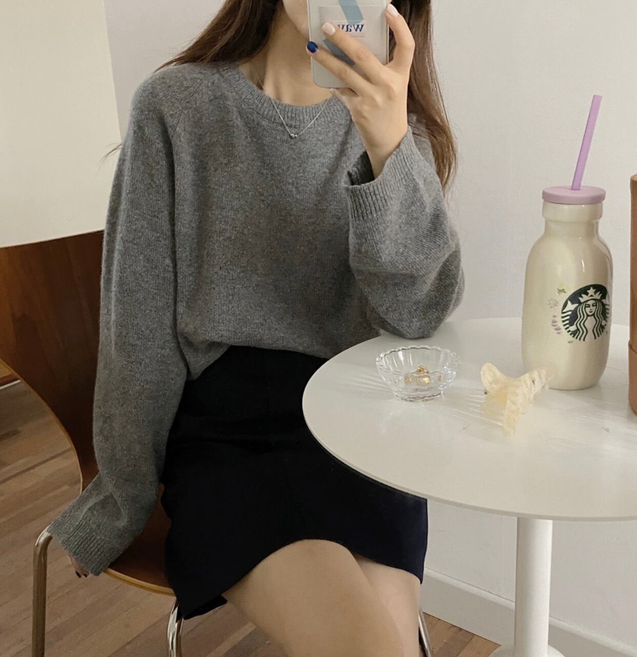 ラウンドネックプルオーバー ソリッド カラーセーター レディースルーズニット ウィンター 冬物 Oネック ソリッドカラー クレセントシティ79064920591