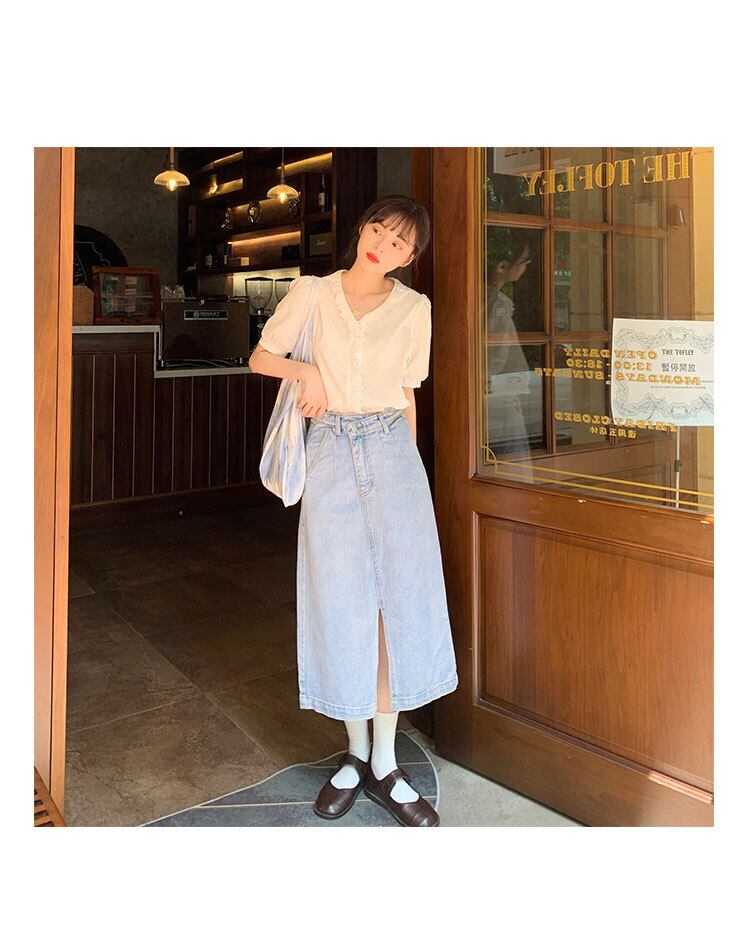 レースVネックシャツ サマールーズ薄手スタンダード レトロ 夏物 クレセントシティ75705372235