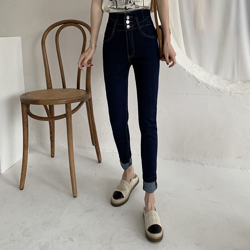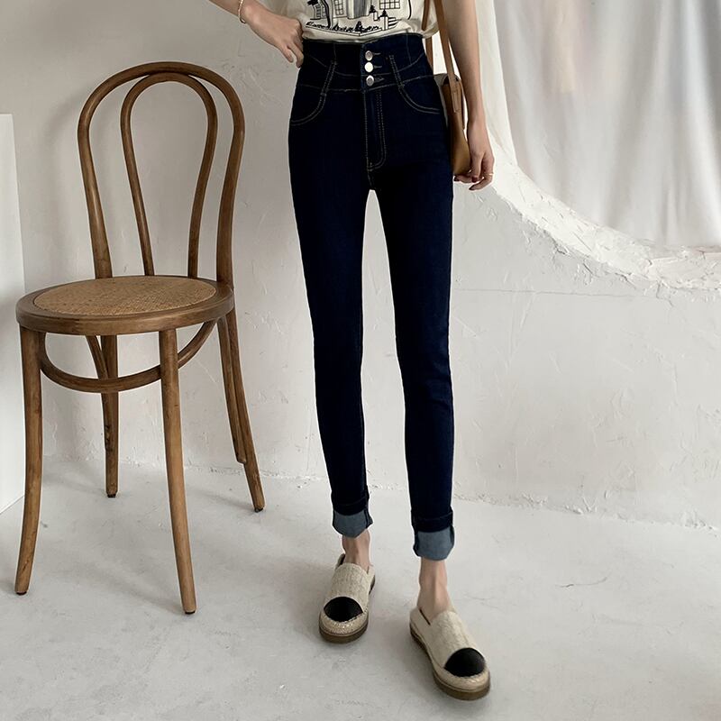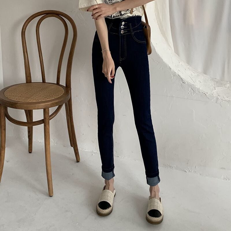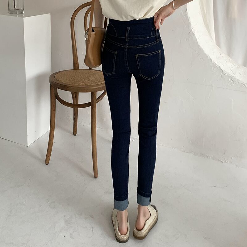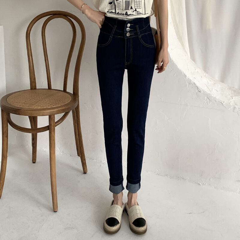 スタンダードウェストジーンズ スプリングスリム薄手スキニーパンツ レトロ 春物 クレセントシティ41040828787
