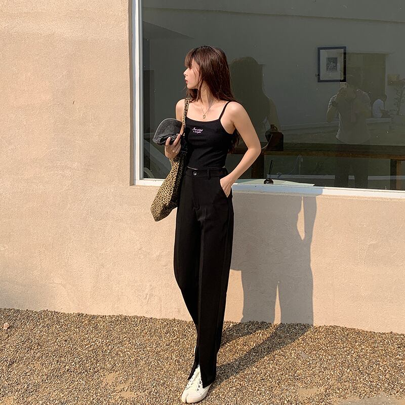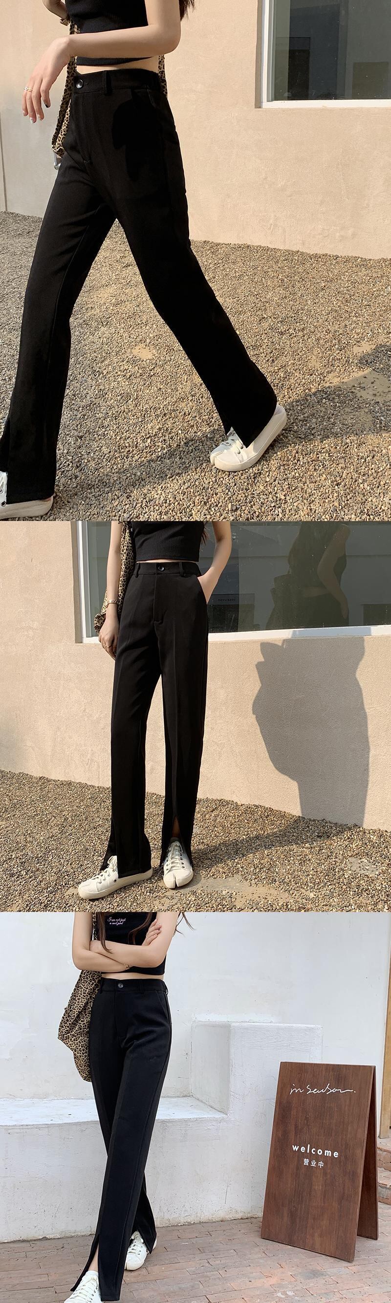 パンツ レディースサマーブラックスリムハイウェストウェストルーズ 夏物 クレセントシティ64396754841