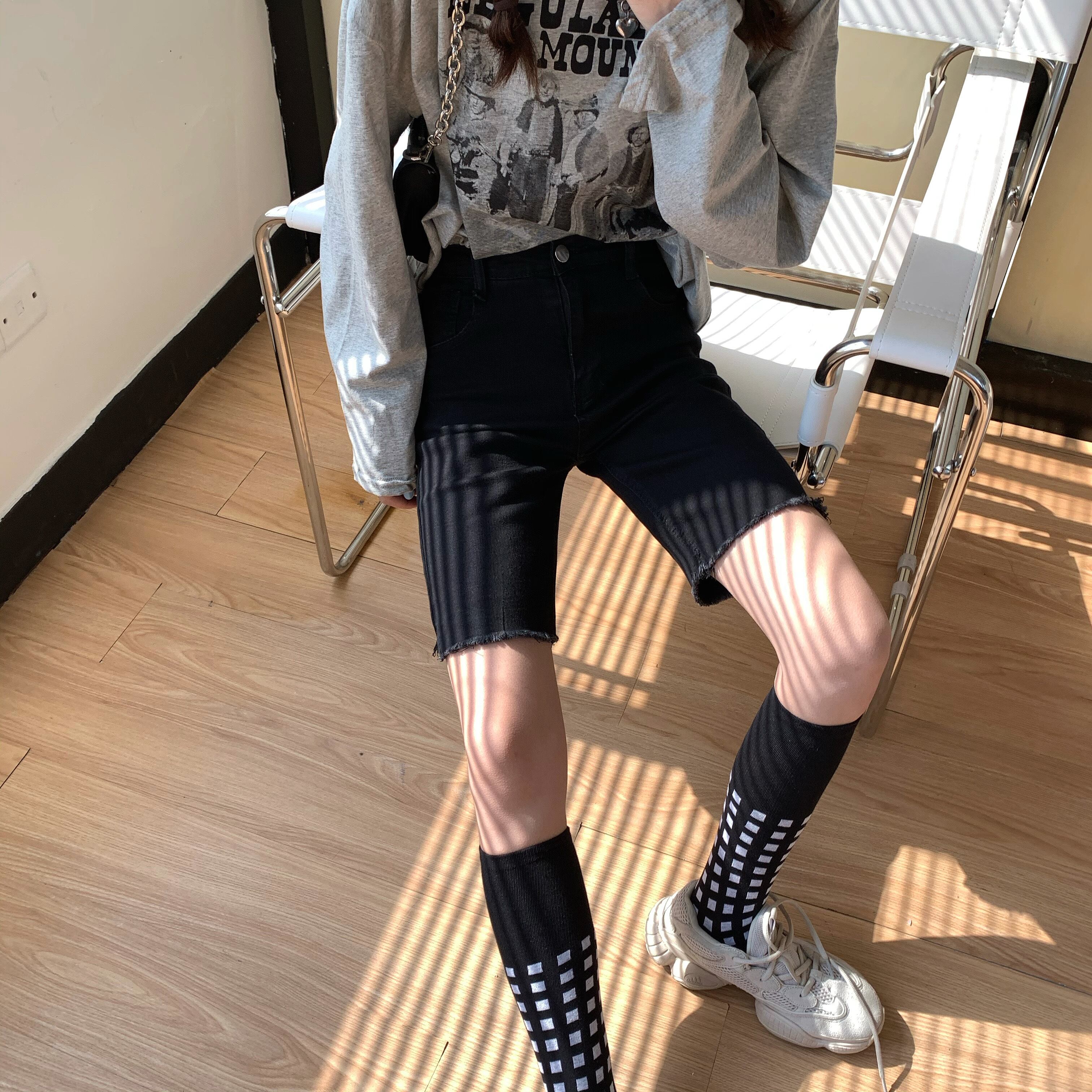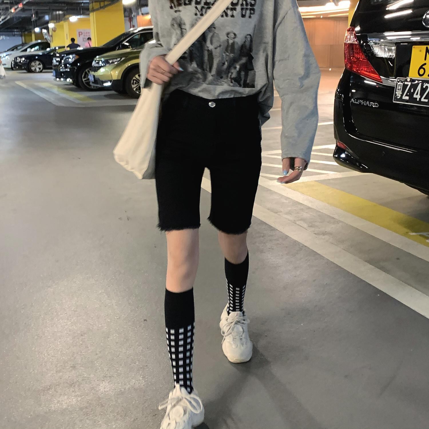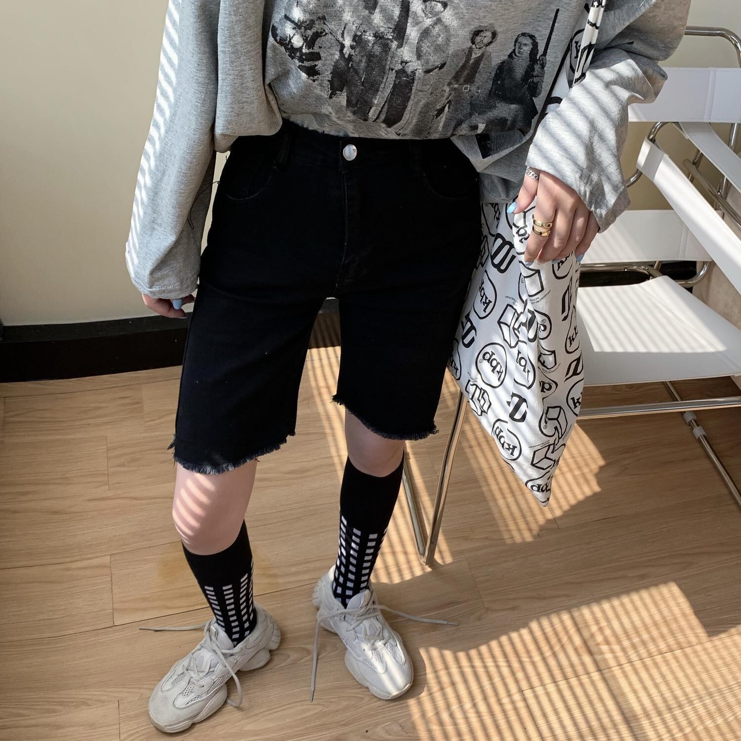 ブラックジーンズ サマースリムハイウェストウェストパンツ 薄手ショーツ 夏物 ブルマー クレセントシティ44313570756