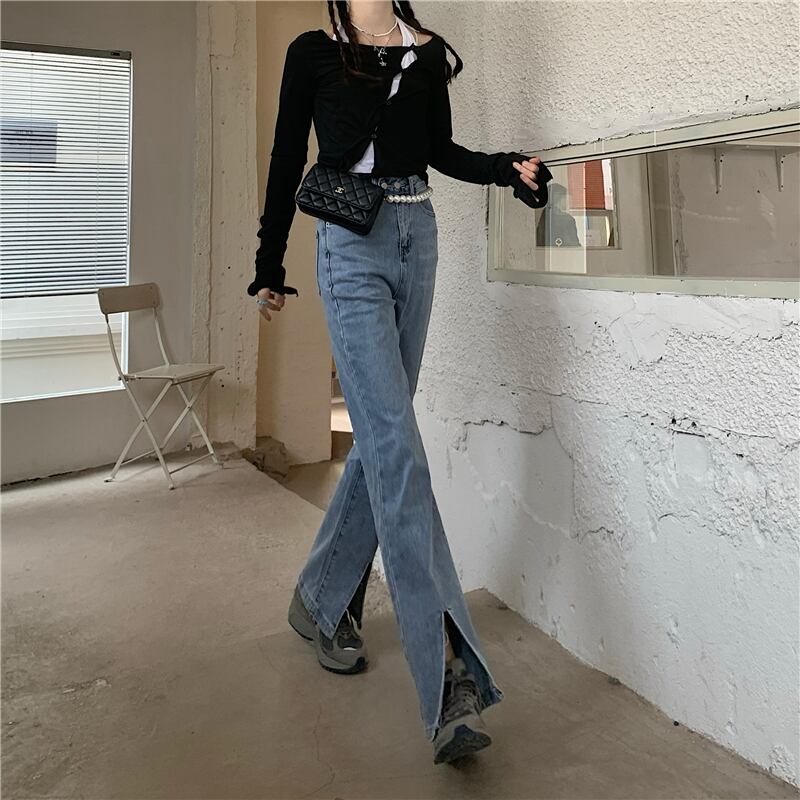 スリットジーンズ レディースサマールーズハイウェストウェスト薄手 夏物 クレセントシティ76242612744
