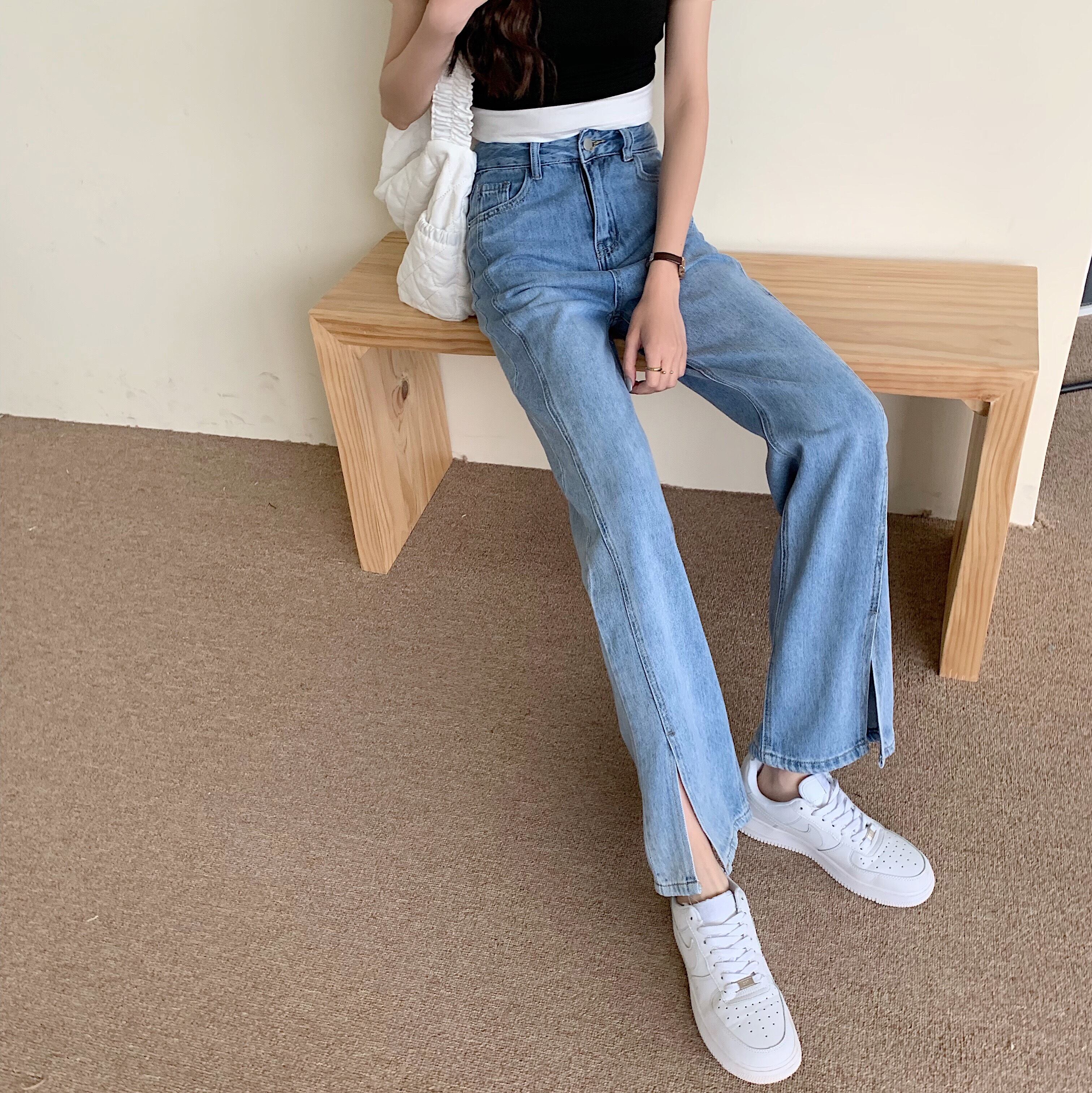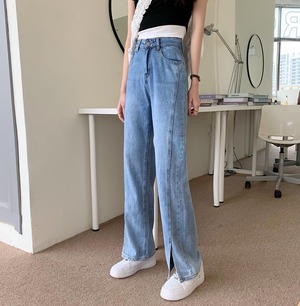ジーンズ レディースサマー薄手ルーズハイウェストウェストパンツ 夏物 クレセントシティ24017658961
