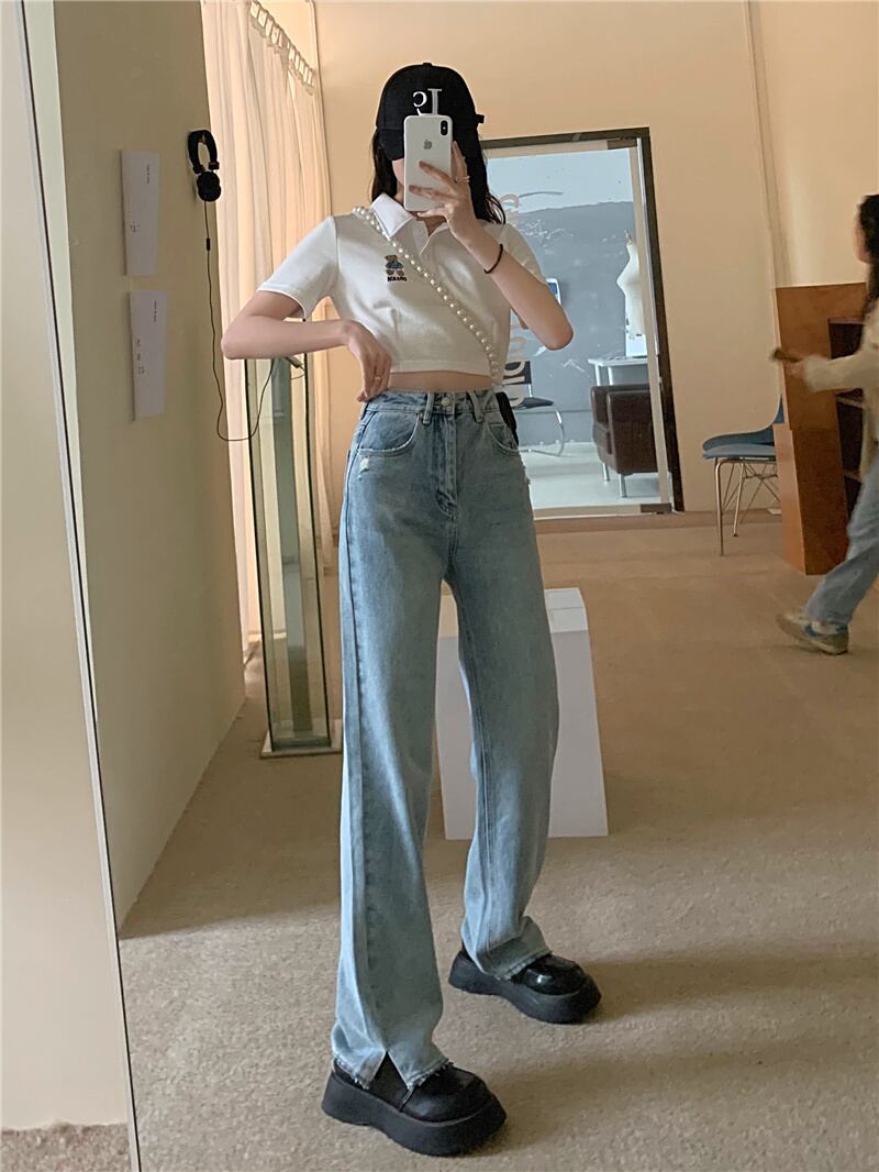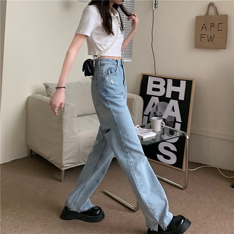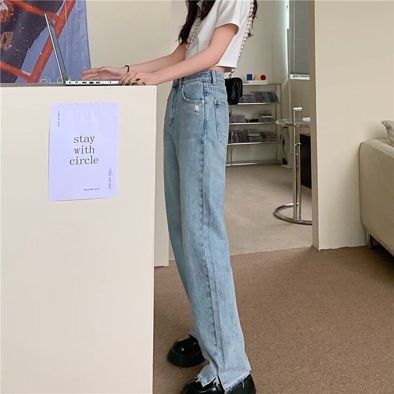 スタンダードジーンズ レディースサマールーズハイウェストウェストワイドレッグパンツ レトロ 夏物 ワイドパンツ クレセントシティ48065698001
