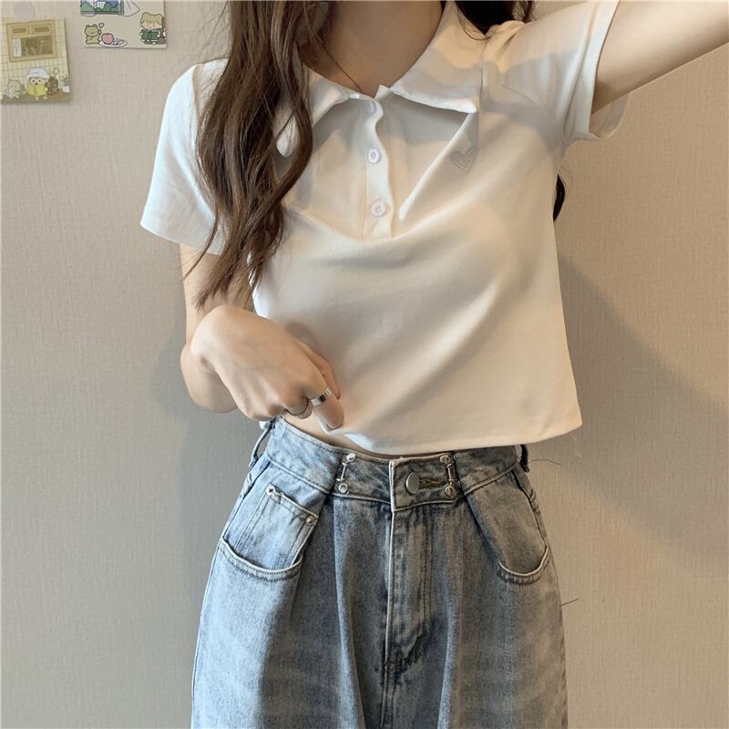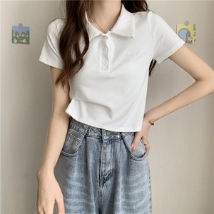 刺繍ショートTシャツ サマー薄手ルーズカラークロップトップ トップス 夏物 クレセントシティ97707527631