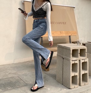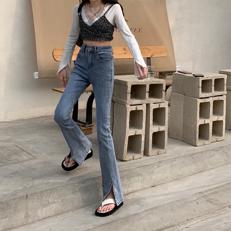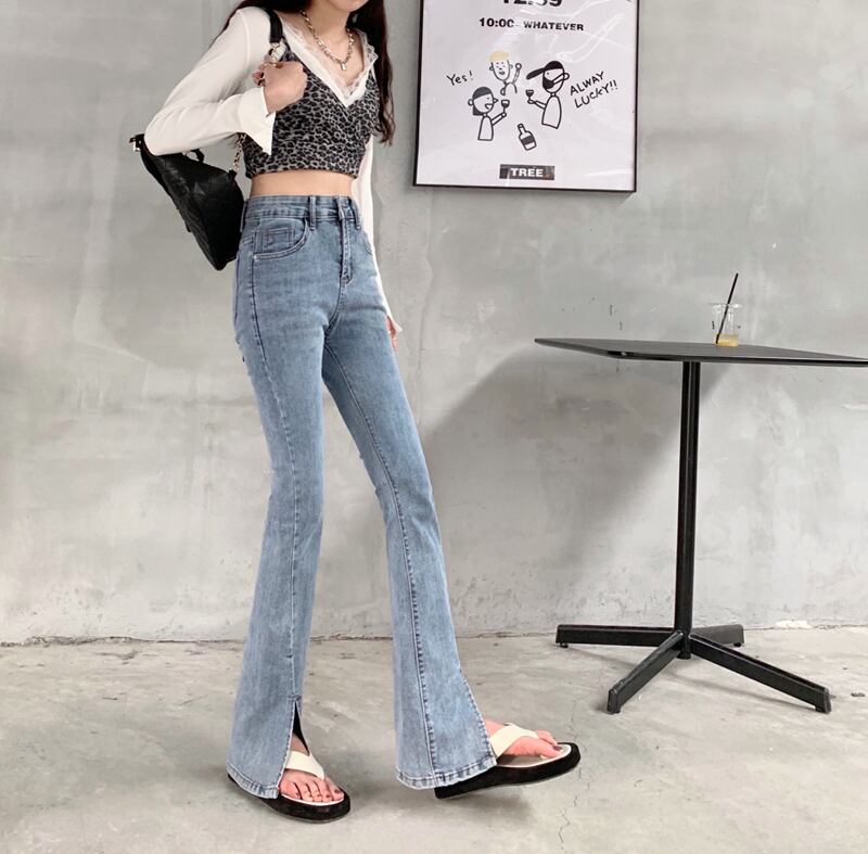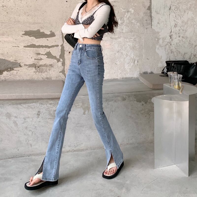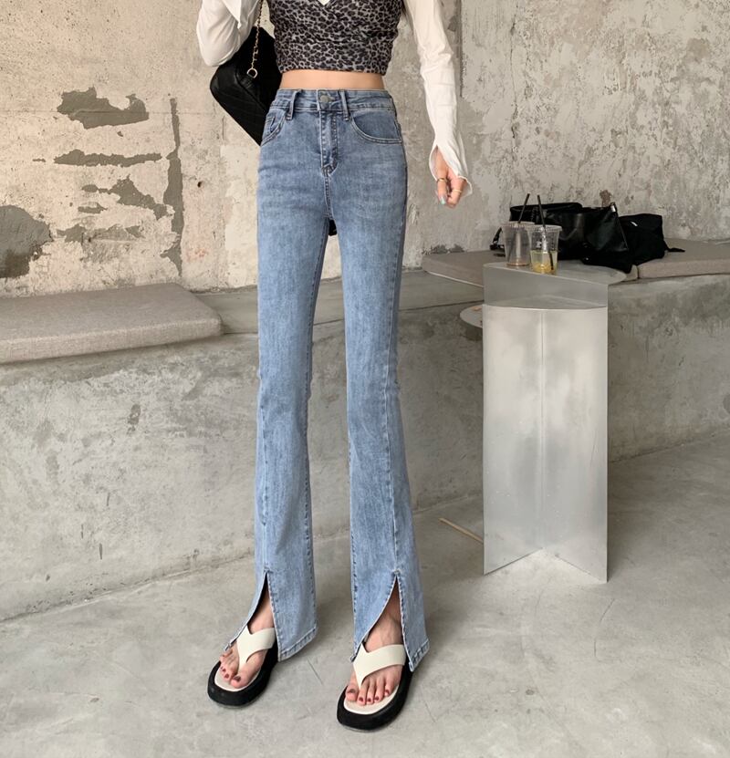 スリットジーンズ レディースサマースリム薄手ハイウェストパンツ 夏物 クレセントシティ77458042697