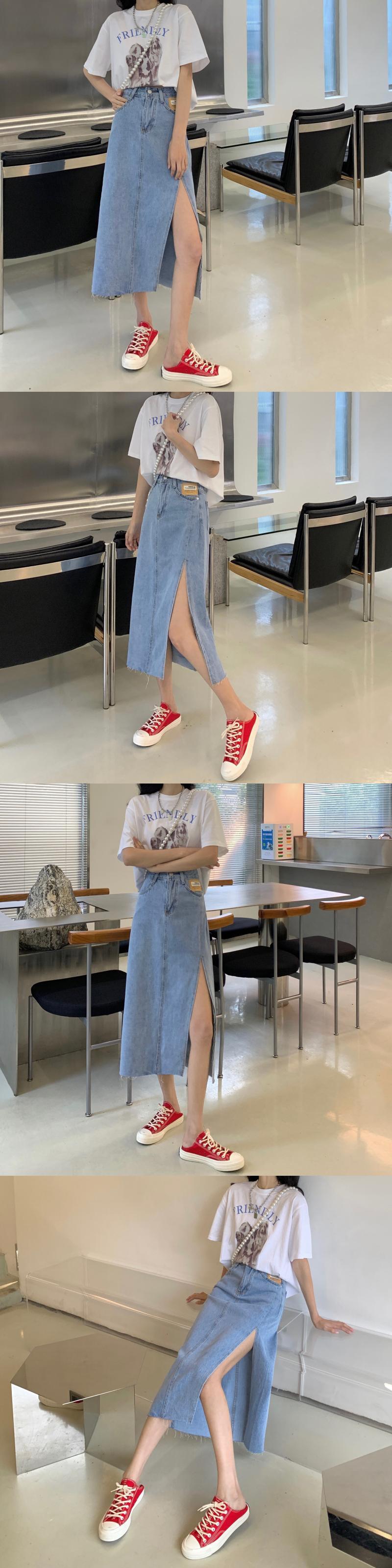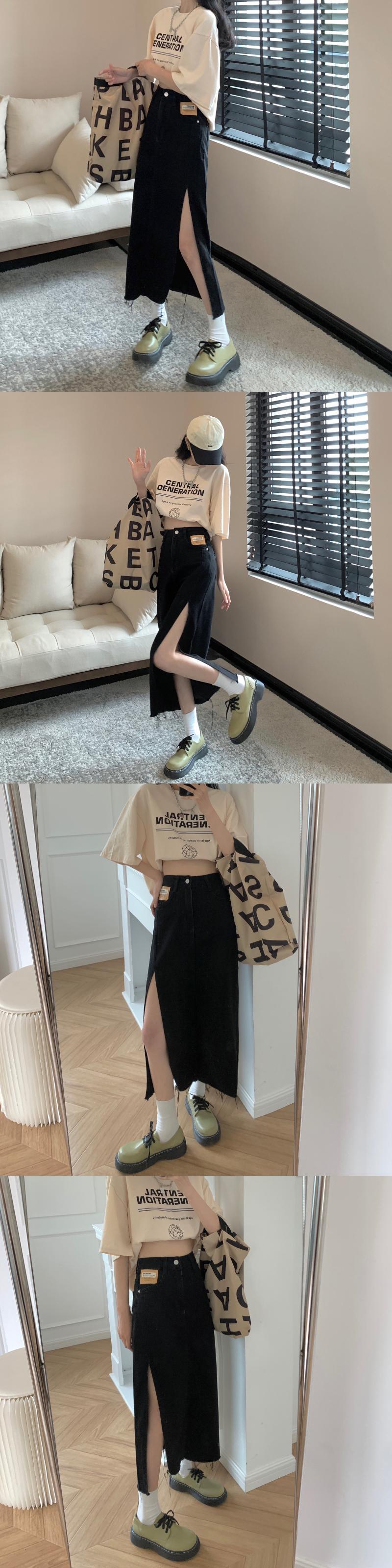 ウェストサイドスリットスカート サマースリム薄手Aラインロング 夏物 クレセントシティ70280831467