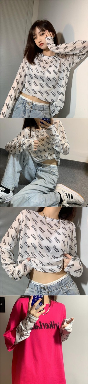 カラー薄手トップス レディースサマールーズラウンドネックシャツ ロング 夏物 Oネック クレセントシティ50952150865