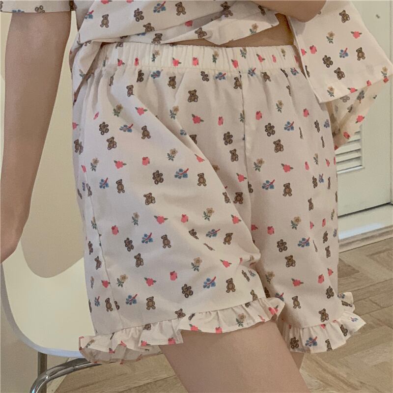 Flowerデザイン プリント柄レディースサマールーズカジュアルレースショーツ 夏物 ブルマー フラワーデザイン クレセントシティ6388219028