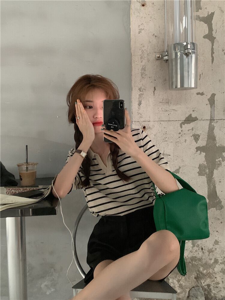 カラーストライプTシャツ サマーカジュアルルーズセーター トップス 夏物 クレセントシティ78646862685