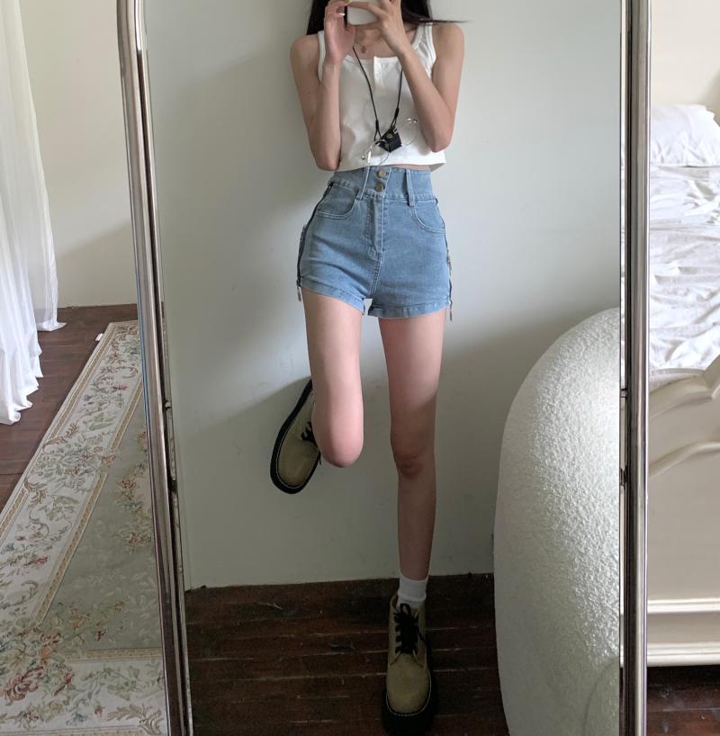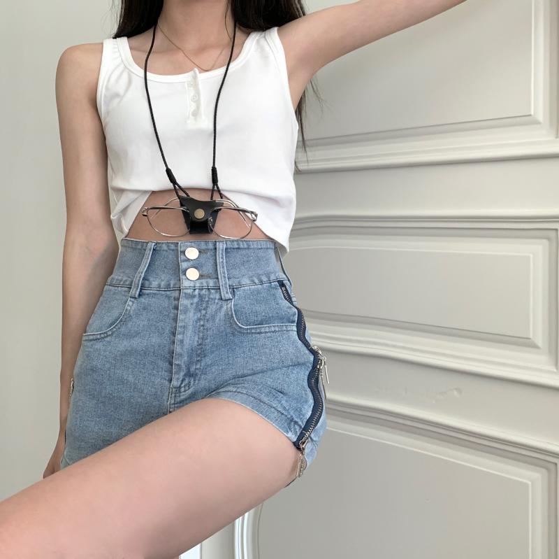 ジッパーショーツ サマールーズ薄手ハイウェストウェストAラインパンツ 夏物 ブルマー クレセントシティ83385785661