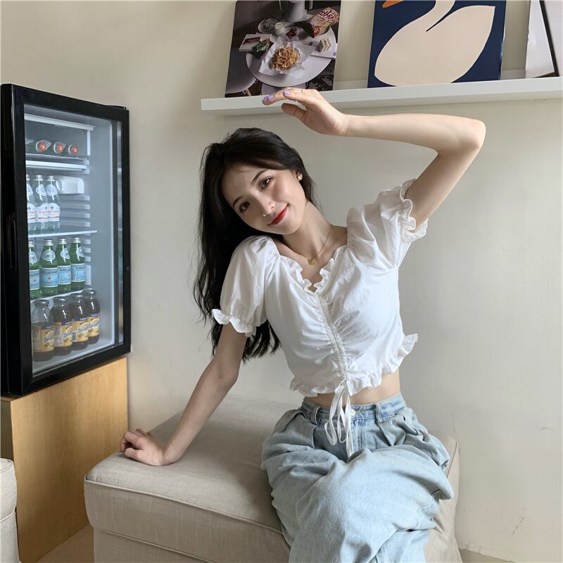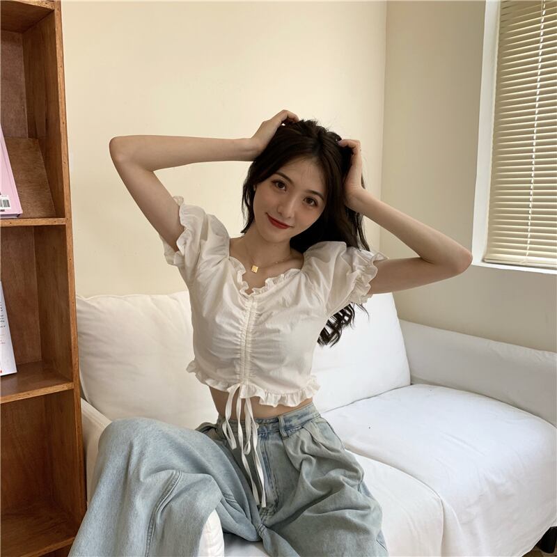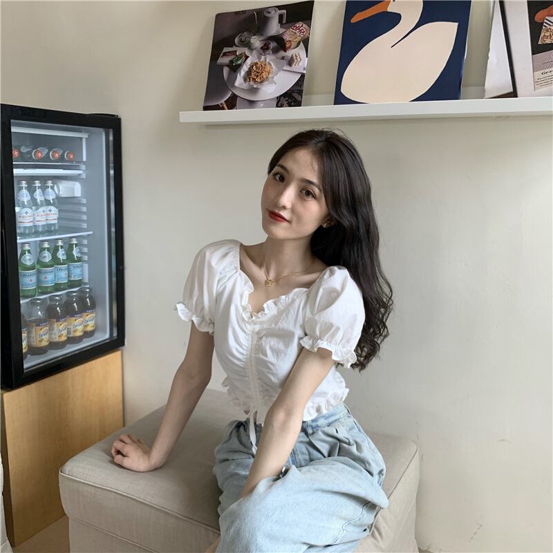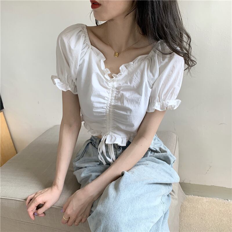ギャザースリーブシャツ サマースリムホワイトショート 夏物 クレセントシティ89373679489
