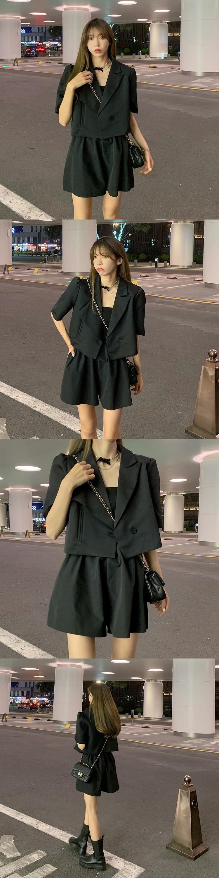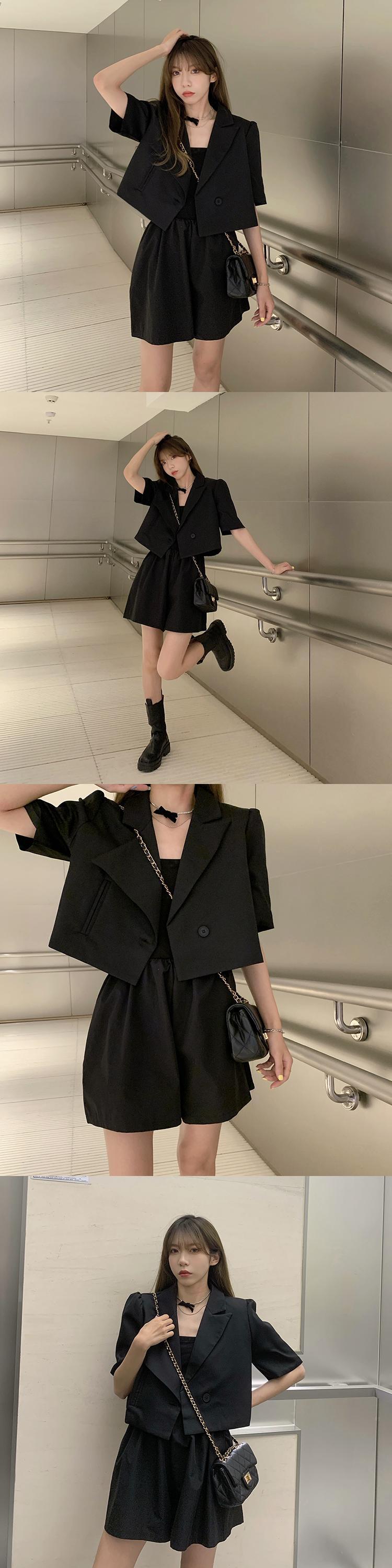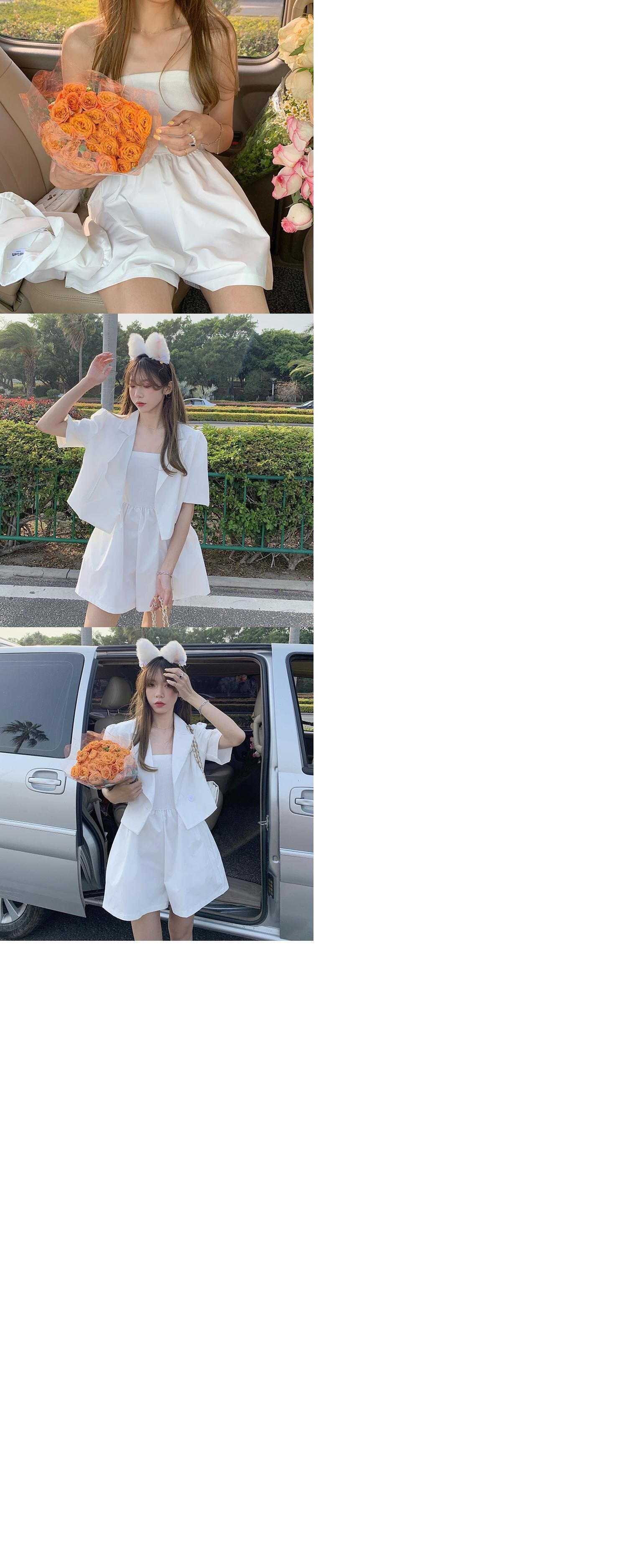 色:白いスーツのジャケット,黒のスーツジャケット,白いチューブトップジャンプスーツ,黒のチューブトップジャンプスーツ