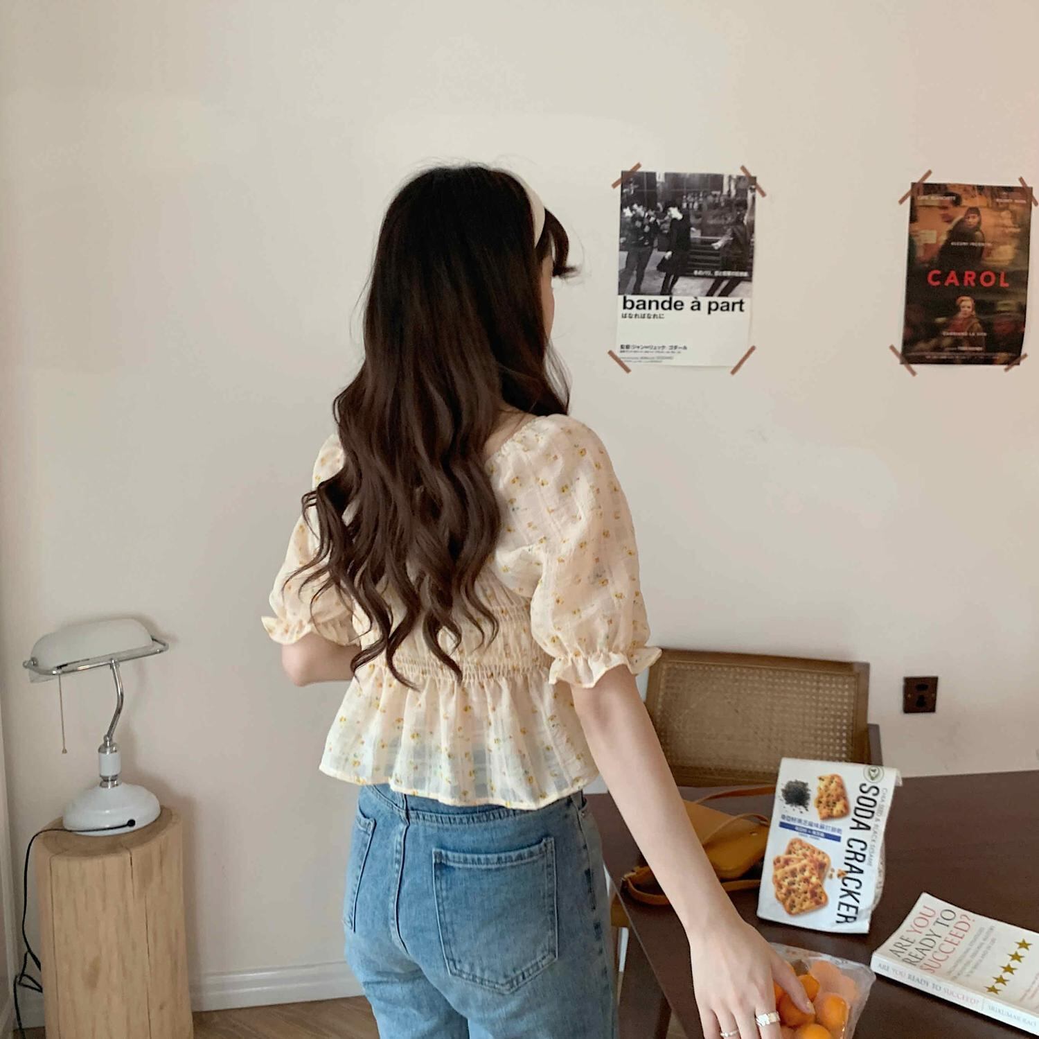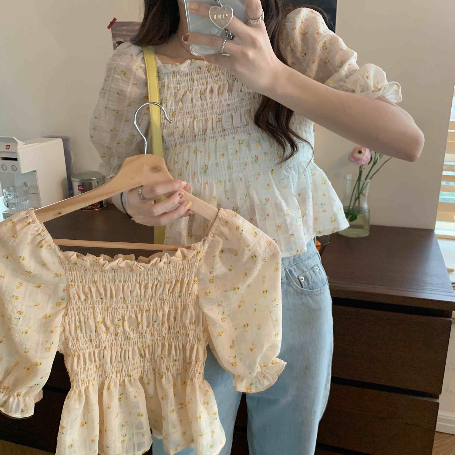 カラーフローラルスリーブショートシャツ サマースタイルスリム 夏物 花柄 スクウェア クレセントシティ56149872602
