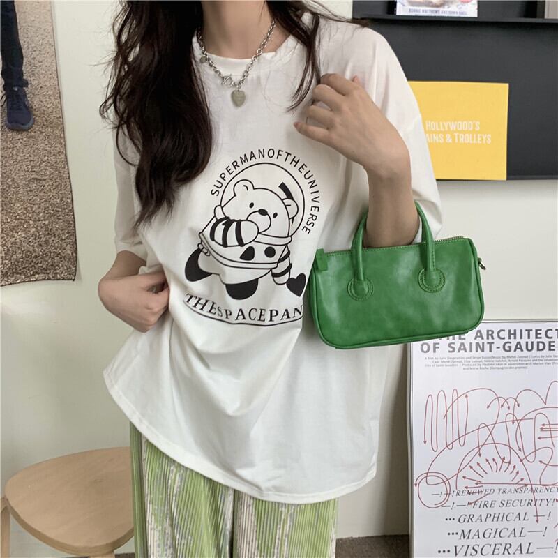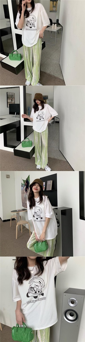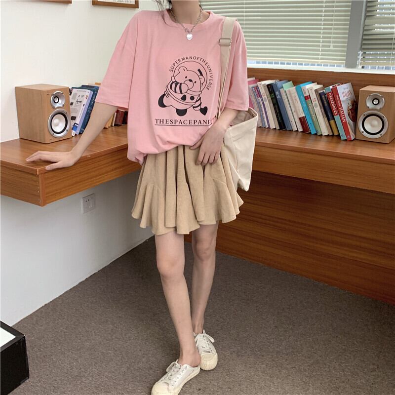 Tシャツ サマープリントルーズカジュアルラウンドネックトップス ピンク 夏物 Oネック クレセントシティ3341557925