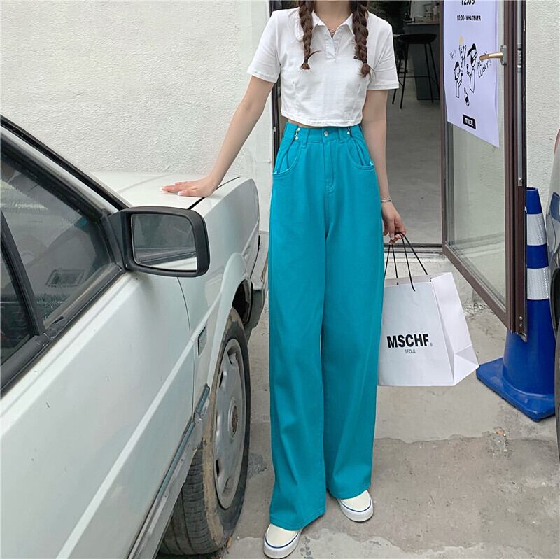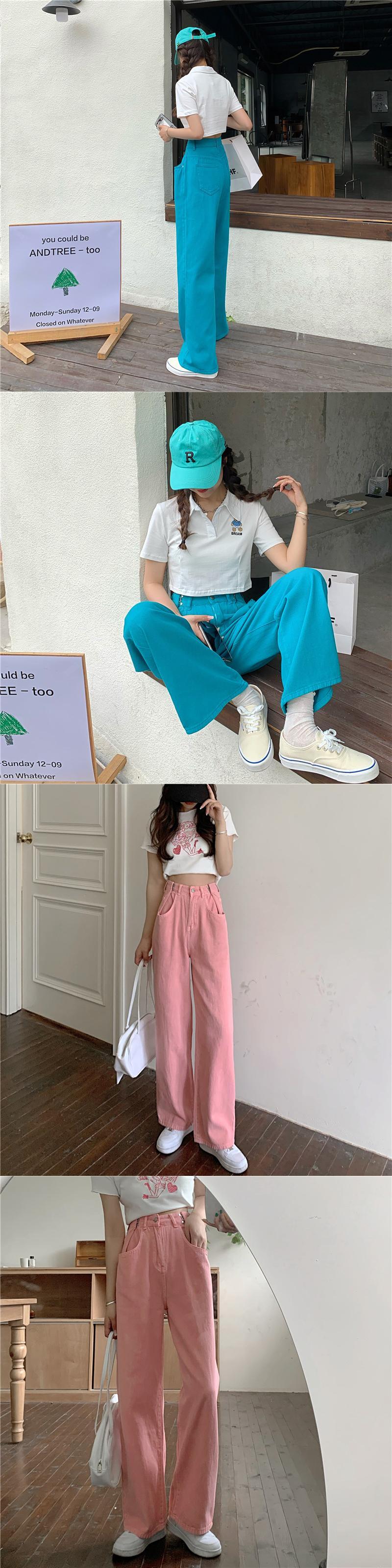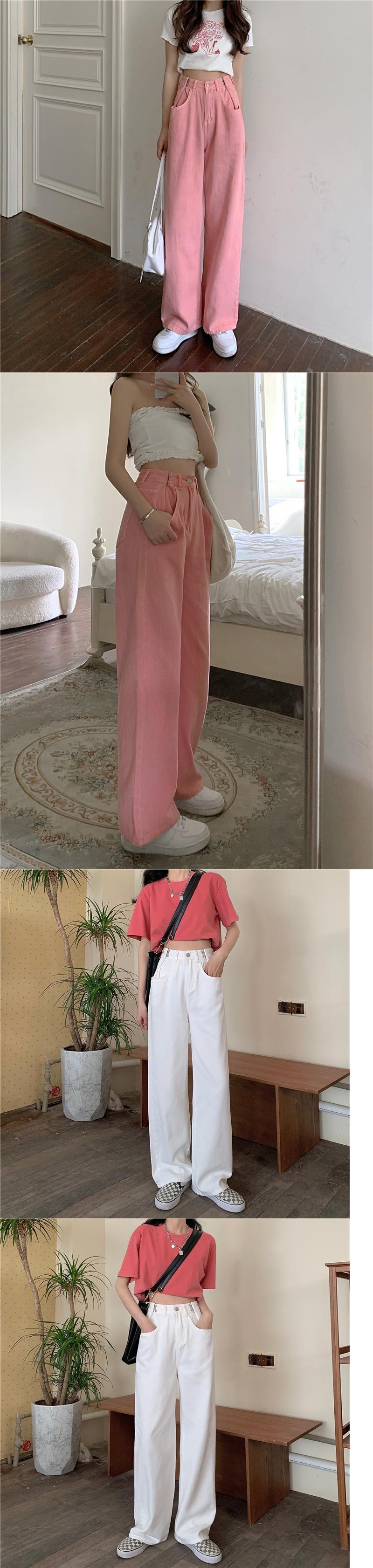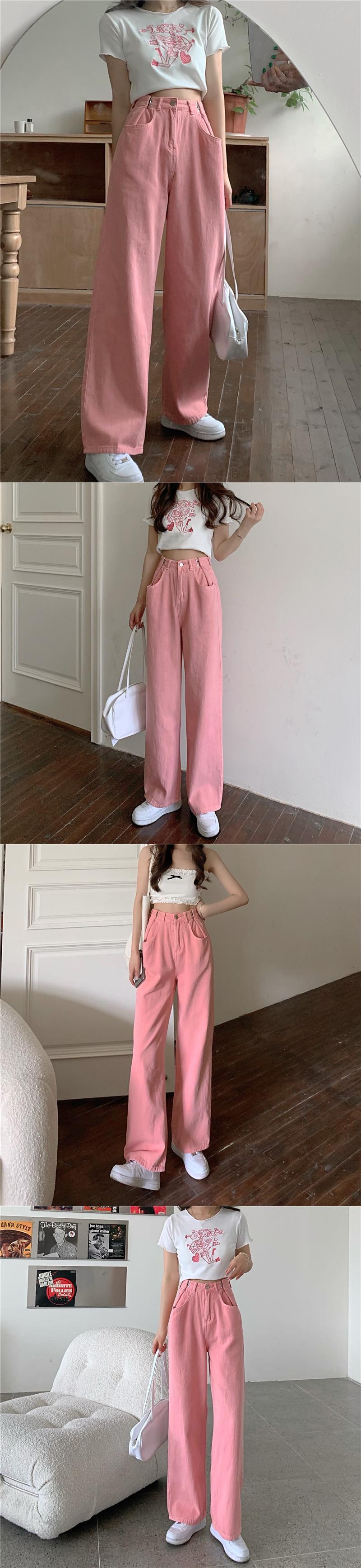 ジーンズ サマールーズ薄手カジュアルハイウェストウェストパンツ ピンク 夏物 クレセントシティ69408354755
