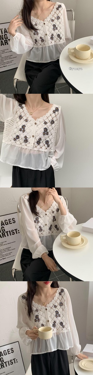 シフォンシャツ サマールーズVネック レッド 刺繍 夏物 クレセントシティ64103813660