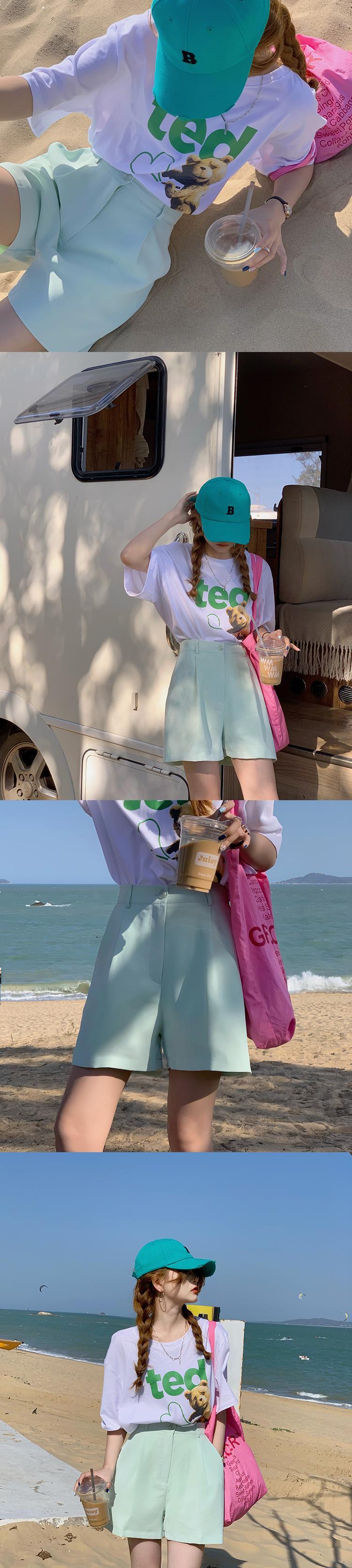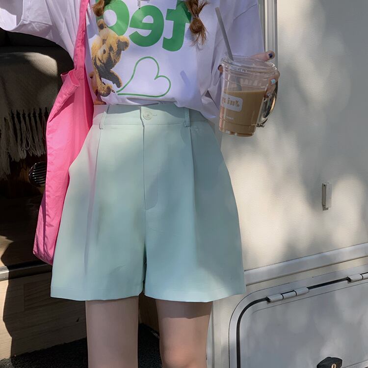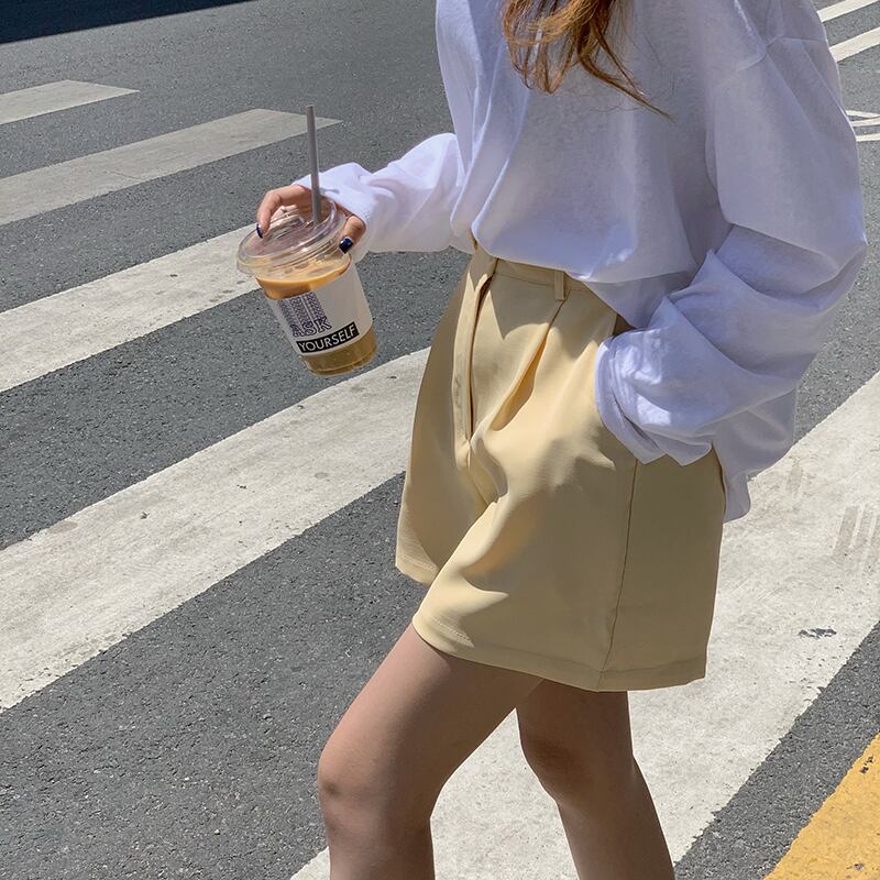ショーツ サマー薄手ルーズハイウェストウェストワイドレッグカジュアルパンツ 夏物 ブルマー ワイドパンツ クレセントシティ63100353295