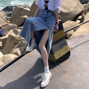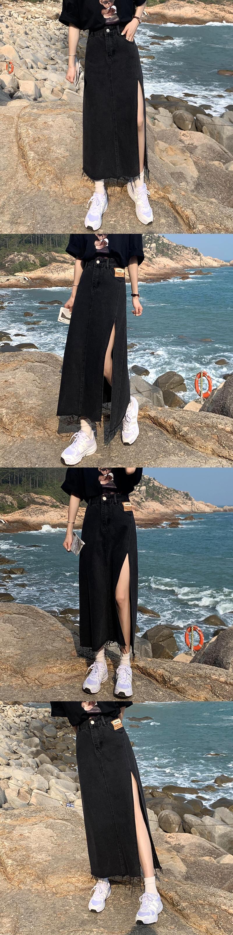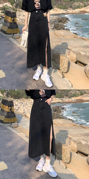 Aラインスカート サマースリムハイウェストウェストブラック 夏物 クレセントシティ39465353607