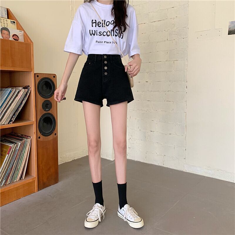 ブラックショーツ サマールーズハイウェストウェスト薄手パンツ Aライン 夏物 ブルマー クレセントシティ4994459810
