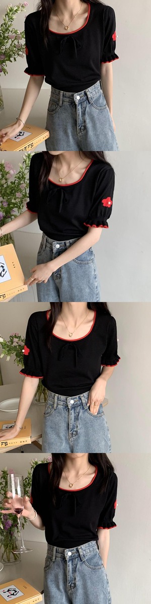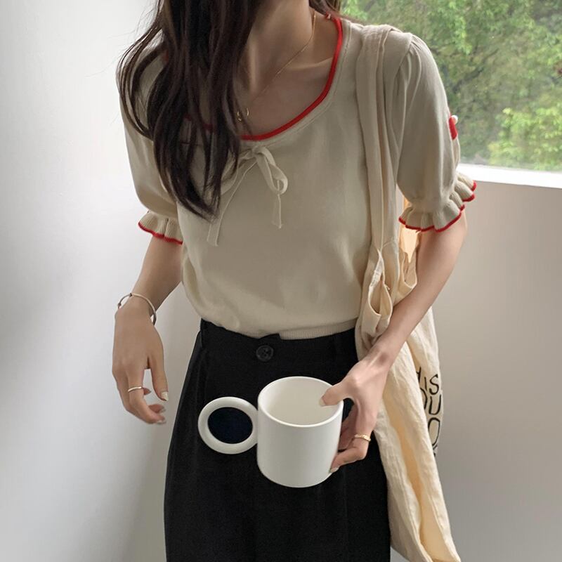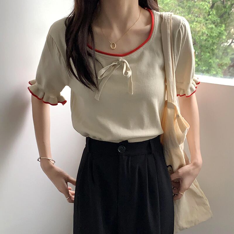 カラーニットTシャツ サマールーズラウンドネックトップス 夏物 Oネック クレセントシティ84738575093