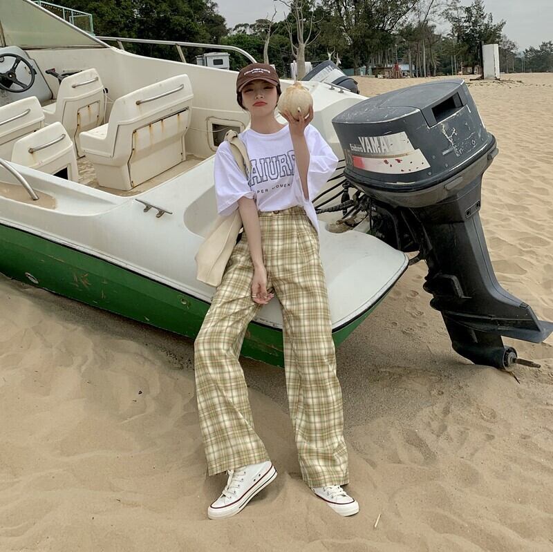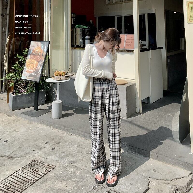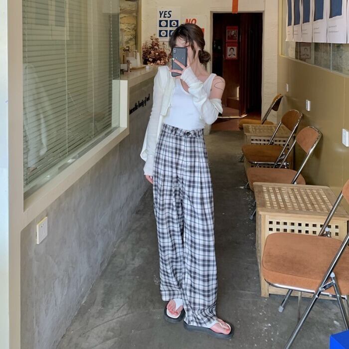 格子柄パンツ サマールーズハイウェスト薄手 夏物 クレセントシティ47201129109