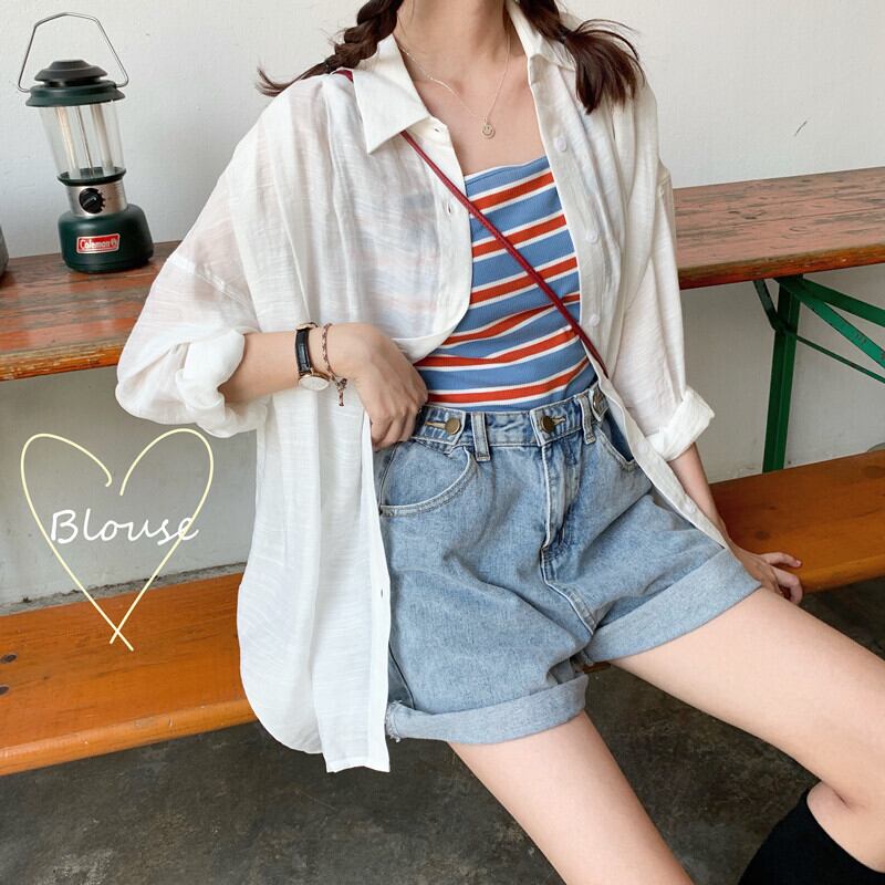 スタイルルーズ薄手シャツ カラーストライプスリム ロング クレセントシティ4435805319