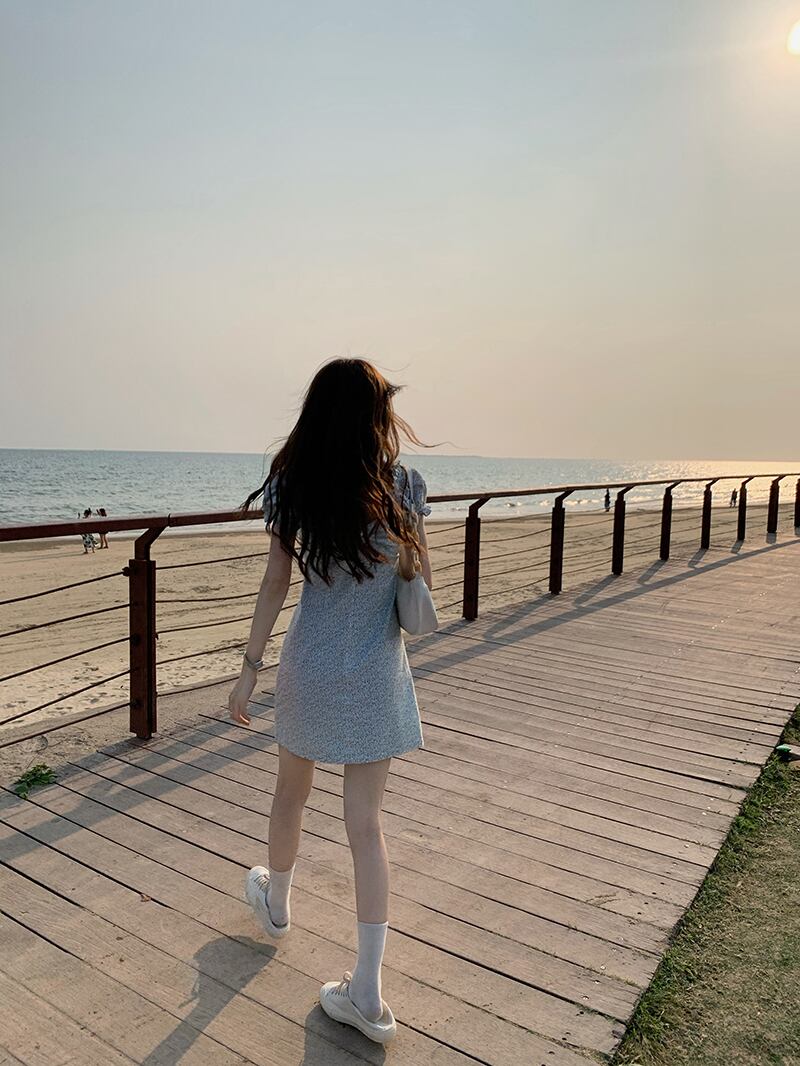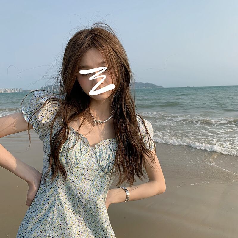 スリーブフローラルドレス サマースタイルウェストAラインスカート 大人ガーリー スウィート キュート カジュアル 夏物 花柄 クレセントシティ5172487864